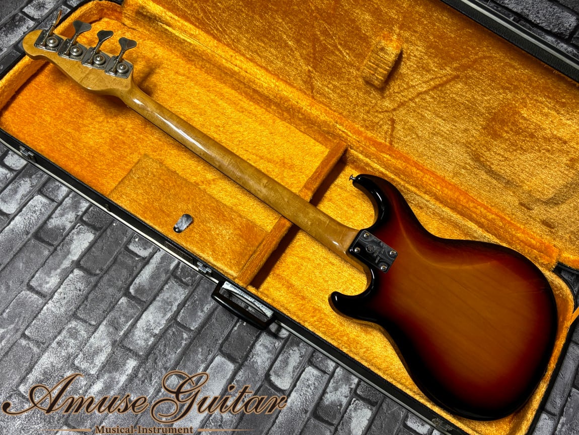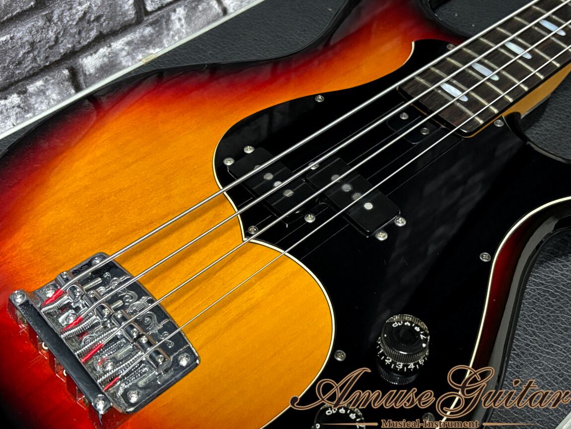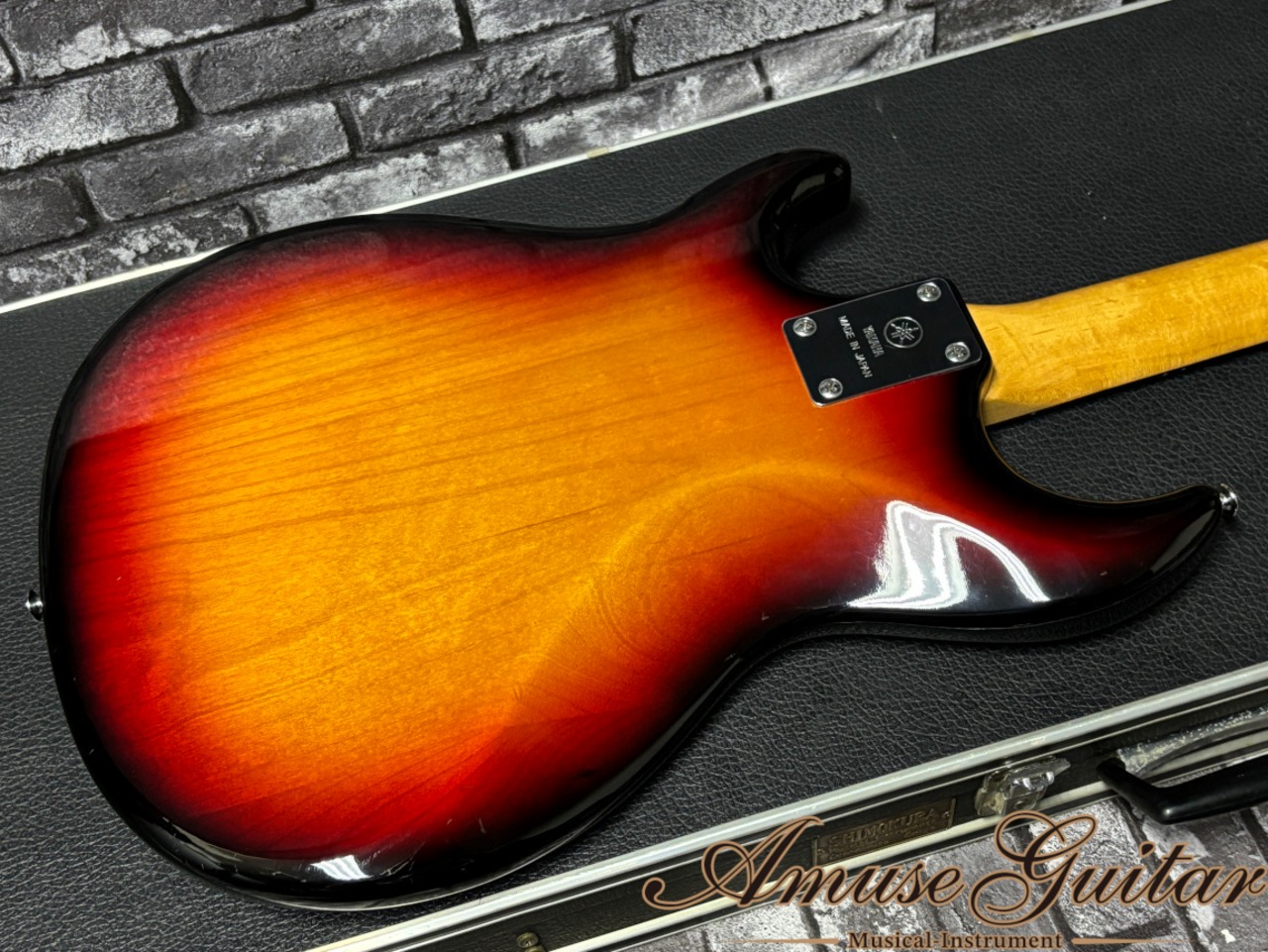 今回ご紹介させて頂きますのは、そのYAMAHAが開発したオリジナルベース”BB”の70年代製作品となります。独特のフォルムのトラディショナル感あふれるスタイルが魅力です。そのパワフルなサウンドは非常に印象的かつ、バンドサウンドの中でも負けないパンチを誇っております。当時の上位モデルとなるコチラ、上質な木材の使用もハッキリとわかります。近年のベースには決して出せない図太い鳴りを体感ください。