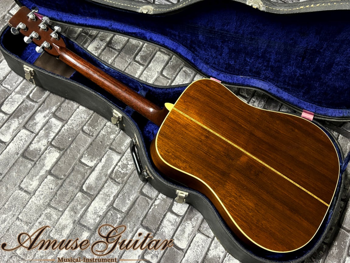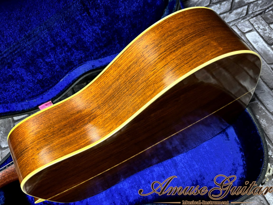 今回ご紹介させていただきますのは、そのD-28。サイド&バックハカランダ採用のこの時期ならではの迫力ある音圧感と、引き締まった低音、煌びやかな高音域が数々の名盤/名演で聴いた“あの音”を体感できます。加えてこちらは多少の交換点こそございますが、クラック&クラック補修歴も無い良好コンディションをキープした一本になります。