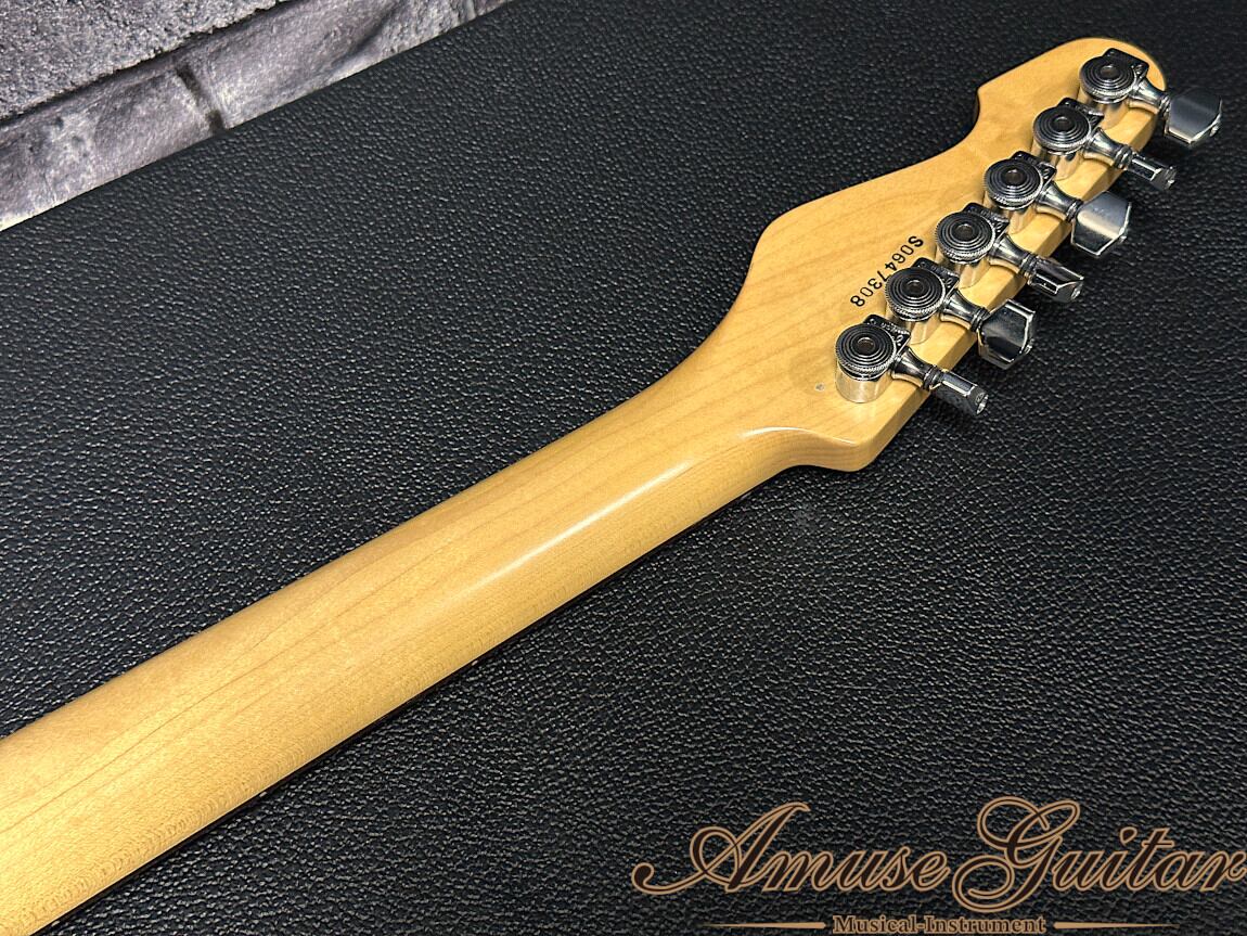 今回ご紹介させていただきますのは、ESP社のモダンTLタイプである“スローバー”。小田和正氏のサポート等で知られるギタリスト稲葉政裕氏や、Yukihide"YT"Takiyama氏(B’z、氷室京介氏サポート等)の使用などでも知られ、ハイレベルなサウンドを求めるプレイヤーにも認められた隠れた名機です。その中でも現在ラインナップされております【THROBBER-STD】の上位機種に位置し、極上材を使用した生産数も少ない廃版モデルとなります。高度な木工技術を生かした奇抜なルックスが目立つモデルの多いESPですが、”重鎮”林宏樹氏により設計されたサウンド重視の基本構造と、クラシック&モダンの要素を各部に絶妙に昇華させたスペックは素晴らしい仕上がりの逸品です。