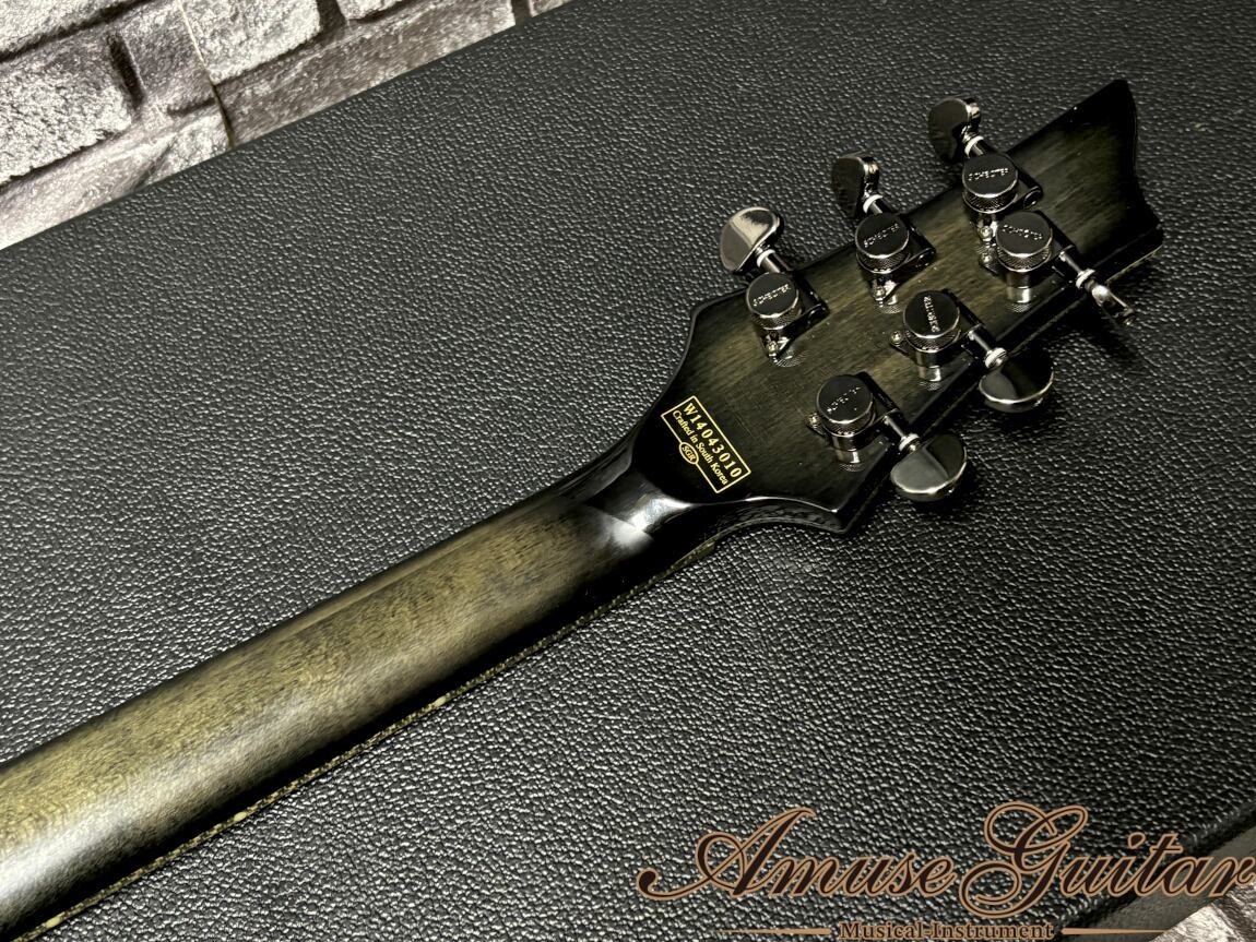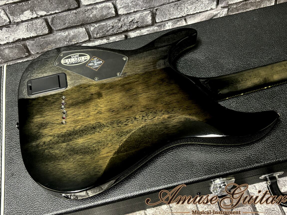 今回ご紹介させていただきますのは、そのシェクタージャパン企画のダイアモンドシリーズの中の一本。アーチトップ&セットネックの間違いないスペックに併せ、最上級のパーツ、ルックスにも拘った他とは一味も二味も違う珠玉の個体です。ラウド系界隈にも支持されることが納得できるハイエンドで、極悪なサウンドも楽しめます。