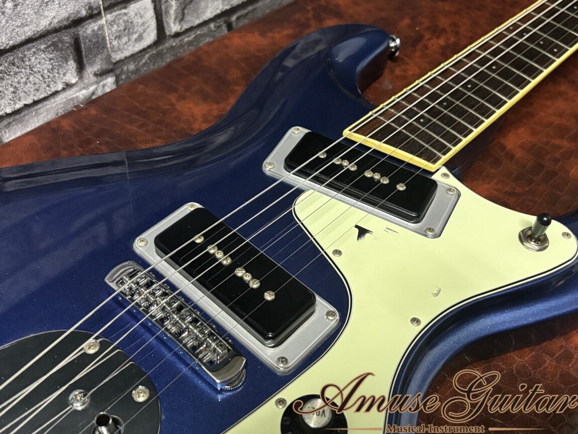 ピックアップにはアリアオリジナルの【VOS-1;Original Single Coil】をリア/フロント共に搭載。所謂P-90タイプのピックアップとなっており、シングルコイル特有の反応の良さと、艶のある中~低音域が優れたサウンドレンジです。クリーンサウンドを基本とするベンチャーズの”ごまかしの効かない”ストレートなスタイルでも安心して使用できるクオリティです。マーシャル系でのギラついたオーバードライブサウンドは勿論、フェンダー系アンプに非常にマッチングするキャラクターは、この個体の鳴り感を生かしたサーフサウンドを是非体感していただきたいです。