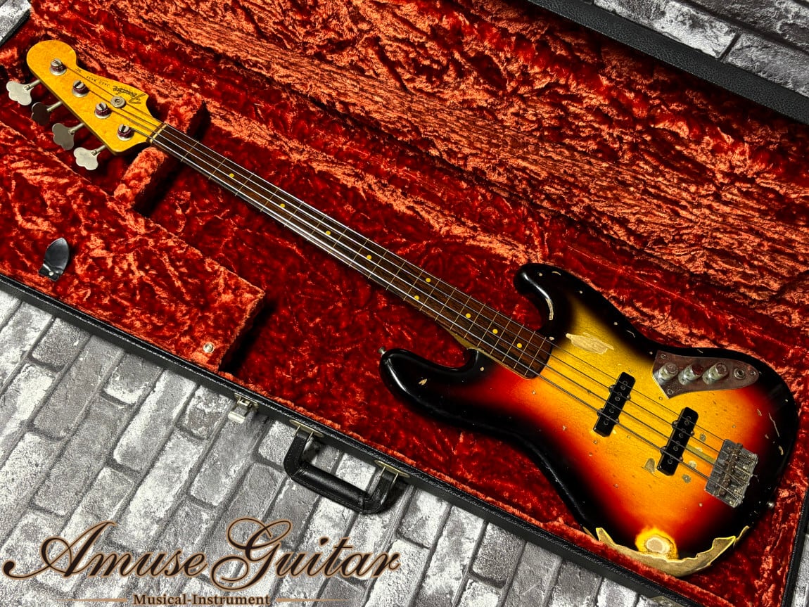 圧巻のヘヴィーエイジド加工が施されたジャコパスモデルの初期製作品。JWサインも入った良質木材採用の激鳴り個体です。