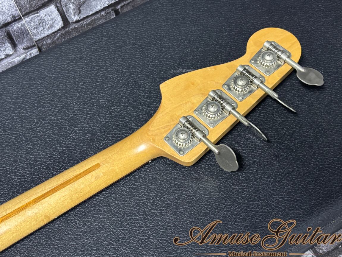 今回ご紹介させて頂きますのは、オリジナルジャズベースを日本製の優れたクオリティでリイシューし、フェンダージャパンブランドからリリースされたJB-45です。ビギナーから上級者まで幅広い愛用者を誇る通称フェンジャパ。ダイナ工場にて生産される本個体の時期は、安定したクオリティとなり高い信頼度と人気を誇っております。