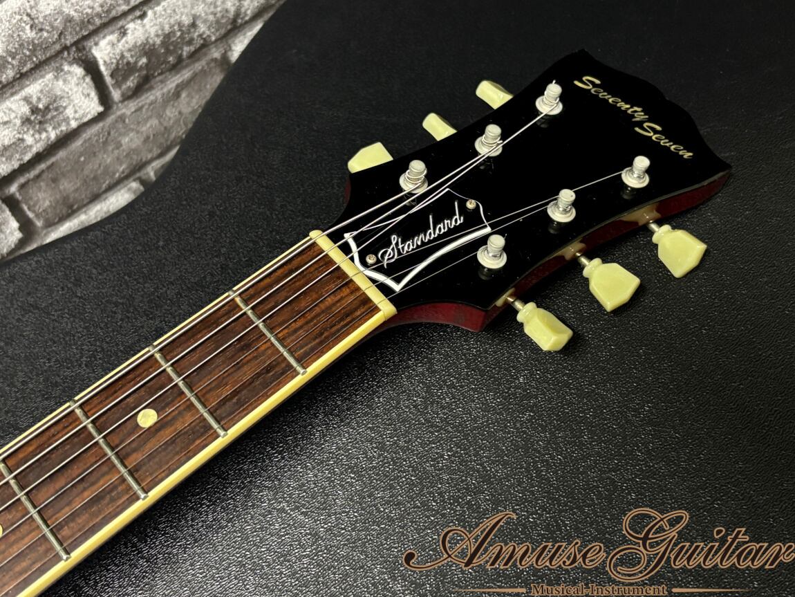 サウンドの要となるピックアップにはSeventySevenオリジナルのAL255を搭載。ヴィンテージライクな出力バランスを基本としながらも、クリアで明瞭、国産”MIJ”然とした解像度の高いサウンドとなるキャラクターです。そこに選定された鳴りの良い木材と、独自のフレーム構造を持つセンターブロックから織りなされる甘く、メロウなサスティーンがアウトプットされ、その全体的な計算がなされたサウンドバランスに驚きます。さすが海外トップハイエンドブランドも認めたものづくりのレベルに、サウンドの説得力にて証明されています。