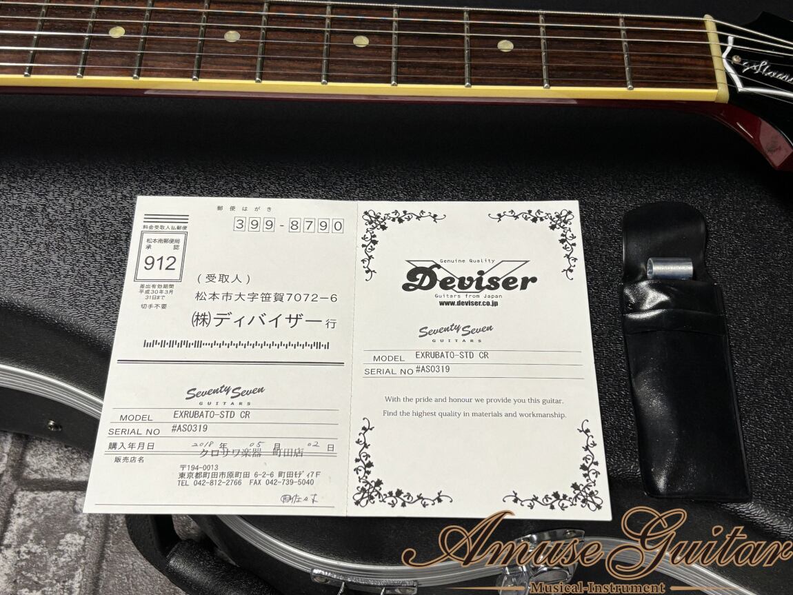 Seventy Seven Guitars EXRUBATO-STANDARD # CR(Cherry Red) 2010年代製【Asuka Factory】w/HC 3.23kg