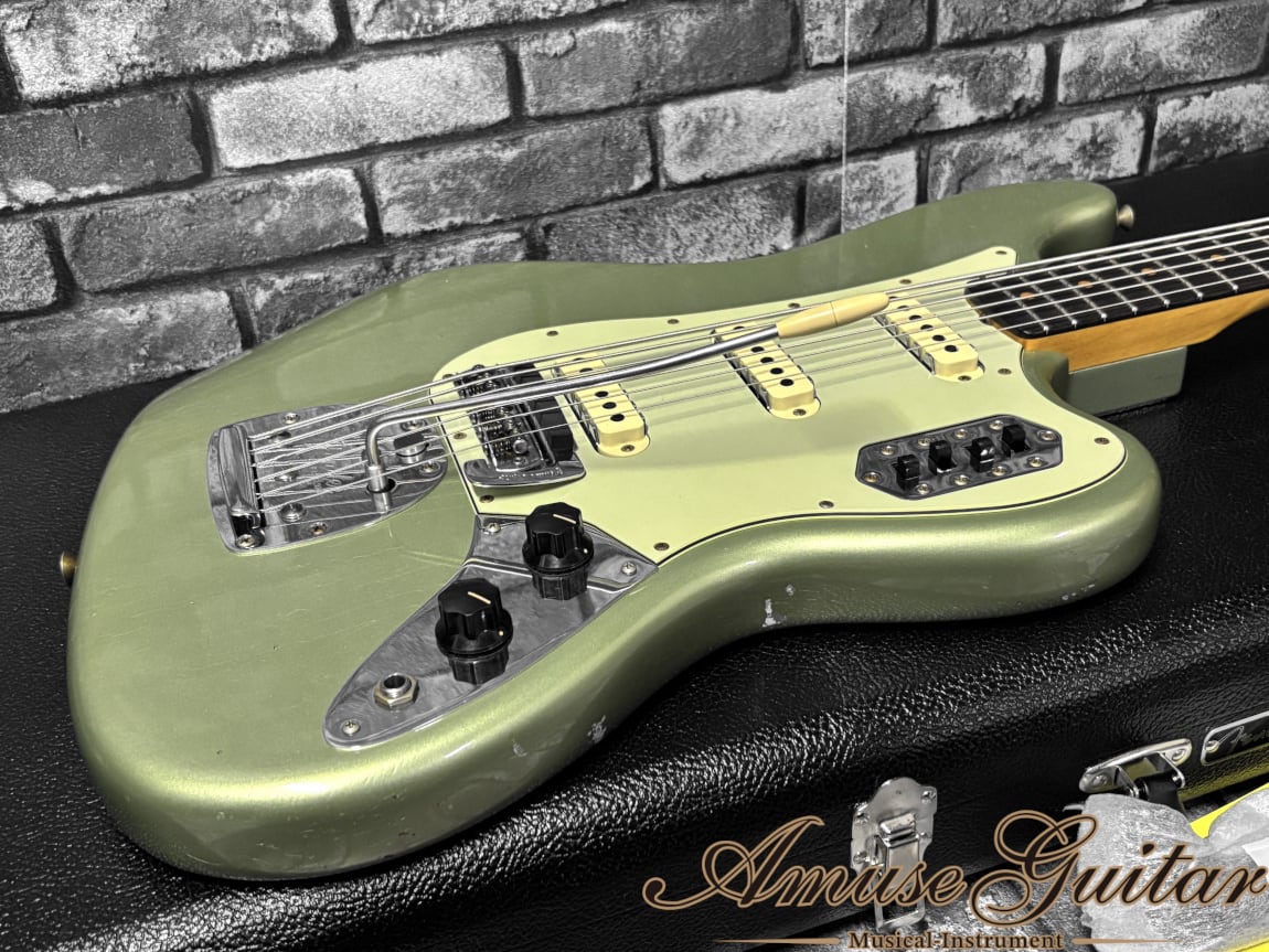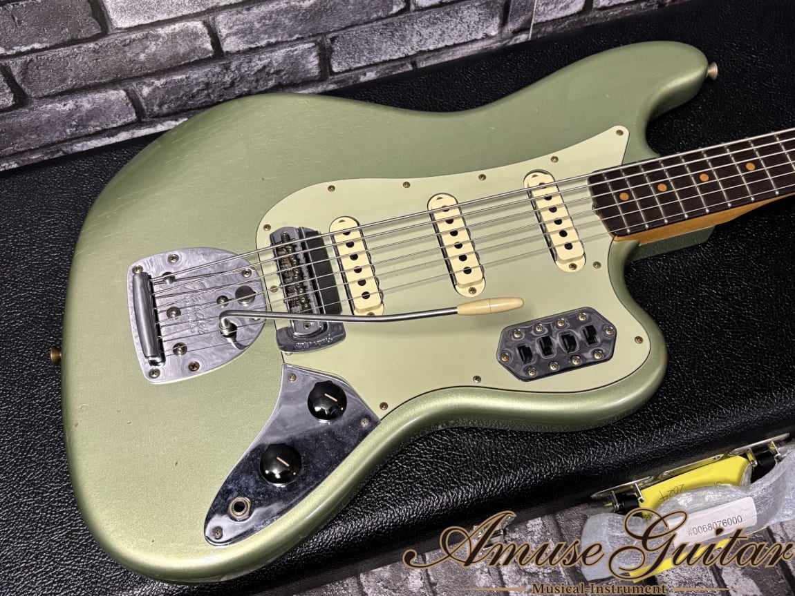 今回ご紹介させて頂きますのは、そのBASS VIをFenderのカスタムショップにて最高峰の技術を用いてリイシューされた一本で、新品価格は余裕の1,000,000円越えの極上品です。恐らく国内に1本~数本のみ入荷されたレアな仕様で、Jレリックに、“アイスブルーメタリックが焼けにより緑系のカラーに経年変化した”様なリアルすぎるヴィンテージライクなカラーがオーラを放つ逸品です。