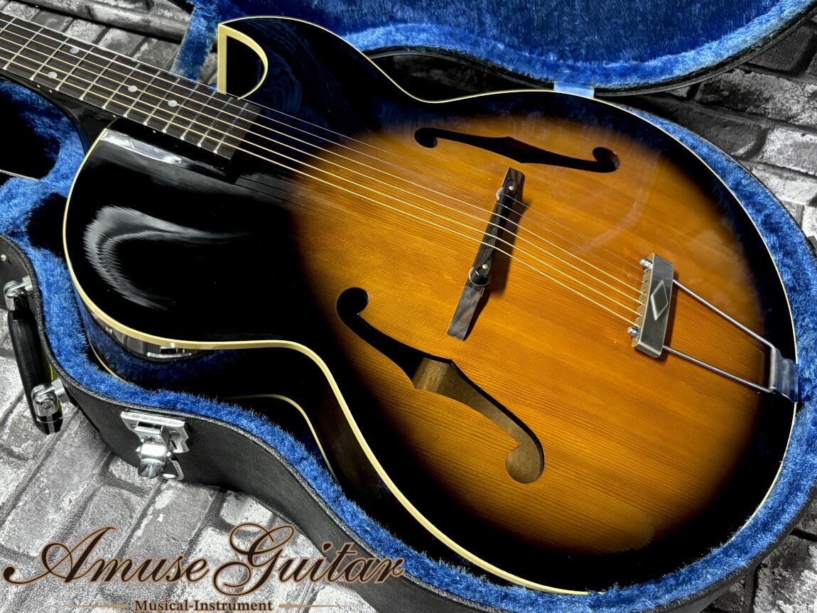 気になる状態ですが、細かな打痕、細かなスレ、ジョイント部クラック(チューニング時も広がらない事を確認済み)こそございますが、全体的にかなり綺麗な印象となっております。もちろん演奏面に支障のある部分はございません。弦高は高めなものの(12フレット1弦側約3.2mm/6弦側約4.0mm)、ローコードの演奏も問題なく演奏できるレベルのセッティングです。ネック部には極僅かな捻じれが確認できます。トラスロッドの余裕もシッカリと確認済み。フレットは約8~9割残りと、激しい使用はされておらず大切に保管されていた事が伺えます。付属品はハードケースとなります。