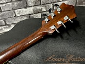 こちらのスペックですが、ボディトップは薄っすらとフィギュアドも確認できる上質なスプルース単板(フォーラムではアディロンダックスプルース使用との記載)、サイド&バックにはローズウッド、ネックには1Pマホガニー、指板とブリッジにはエボニーを使用した木材マテリアルです。648mmのロングスケール、ナット幅42mm、ヘッド角約14度、20フレット、握りやすく手に吸い付くようなCシェイプのセットネック構造。その他としては、アイボロイドバインディング、エボニーブリッジ、GUILD刻印入りシャーラーチューナー、チェスターフィールドのヘッドインレイが特徴として挙げられます。