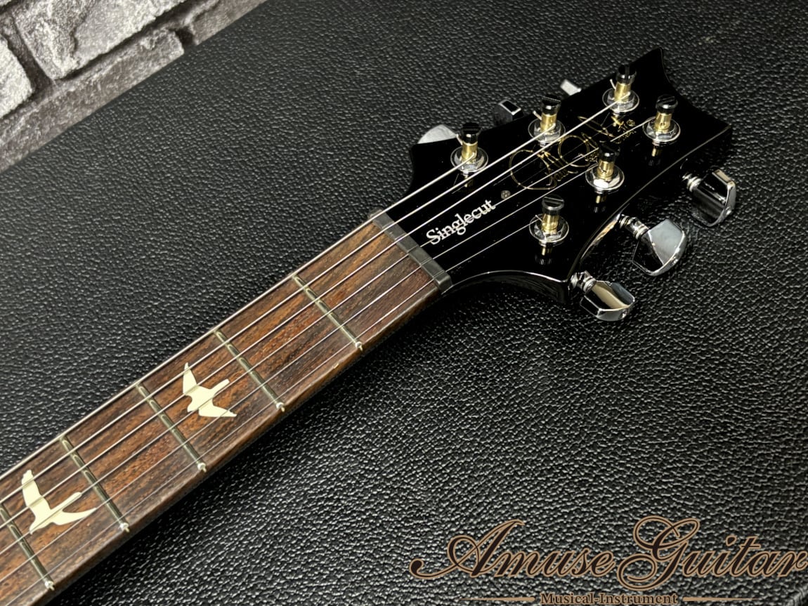 今回ご紹介させていただきますのは、そのPRSが2013年に発表したシリーズ【S2】の中の一本です。Coreモデルと同じくアメリカで製造される”本物”のフィーリングを実現しつつ、コストパフォーマンスを実現した人気のシリーズです。PRSアーティストの中でも、その使用者の多さからも人気の高さが伺えるSinglecutのStandardモデル。Gibson Les Paulからインスピレーションを受けながらもPRSのモダンさを取り込んだ完成度の高い仕上がりを誇り、なんとオプション仕様も採用されている激レアな個体です。