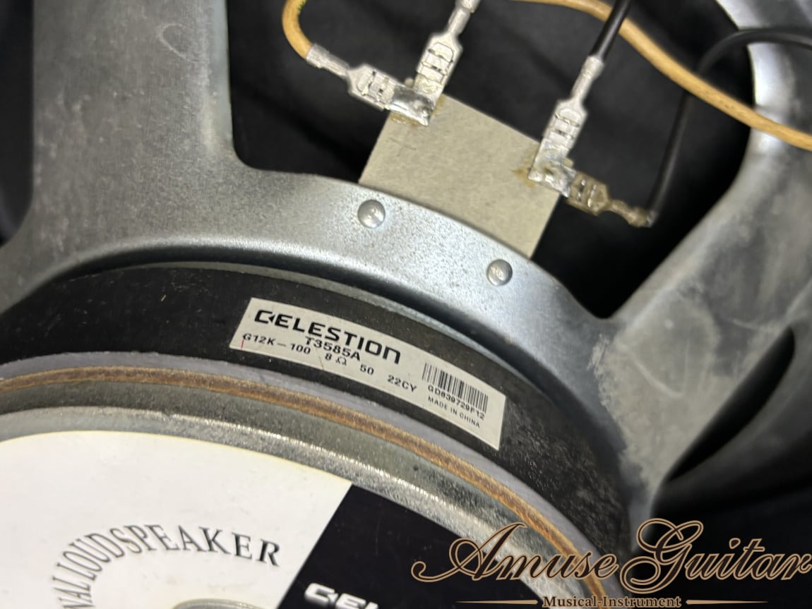 本機は1984年製の100V仕様。スピーカーはCelestion G12K-100を2基に換装し、フェンダーの煌びやかな”スパークルさ”を残したままローをタイトに束ねます。バンドの密度が上がっても輪郭が崩れない推進力があり、クリーンの粒立ち、リバーブの奥行き、Leadチャンネルで得られる厚みとコンプレッション。どれもが現代の音量・編成で“気持ちよくハマる”方向に整っています。