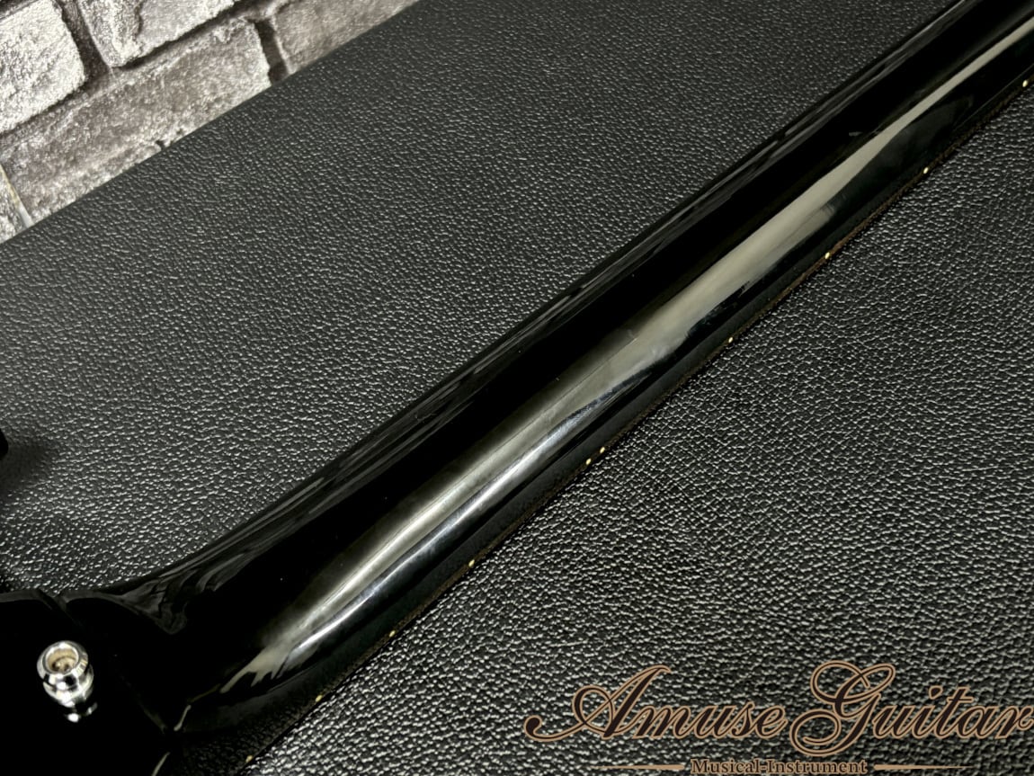 今回ご紹介させていただきますのは、そのGuitar Violenceが1980年代の比較的初期に製作したSG Juniorタイプの一本。60’sスタイルに、黒で統一されたルックスがシャープでかっこいい仕上がりです。ビルダーの土屋氏はAC/DCが大好きで自宅に大量のSGがあったとの情報も確認できますが、それを裏付けるかの様な高い完成度を誇る逸品です。