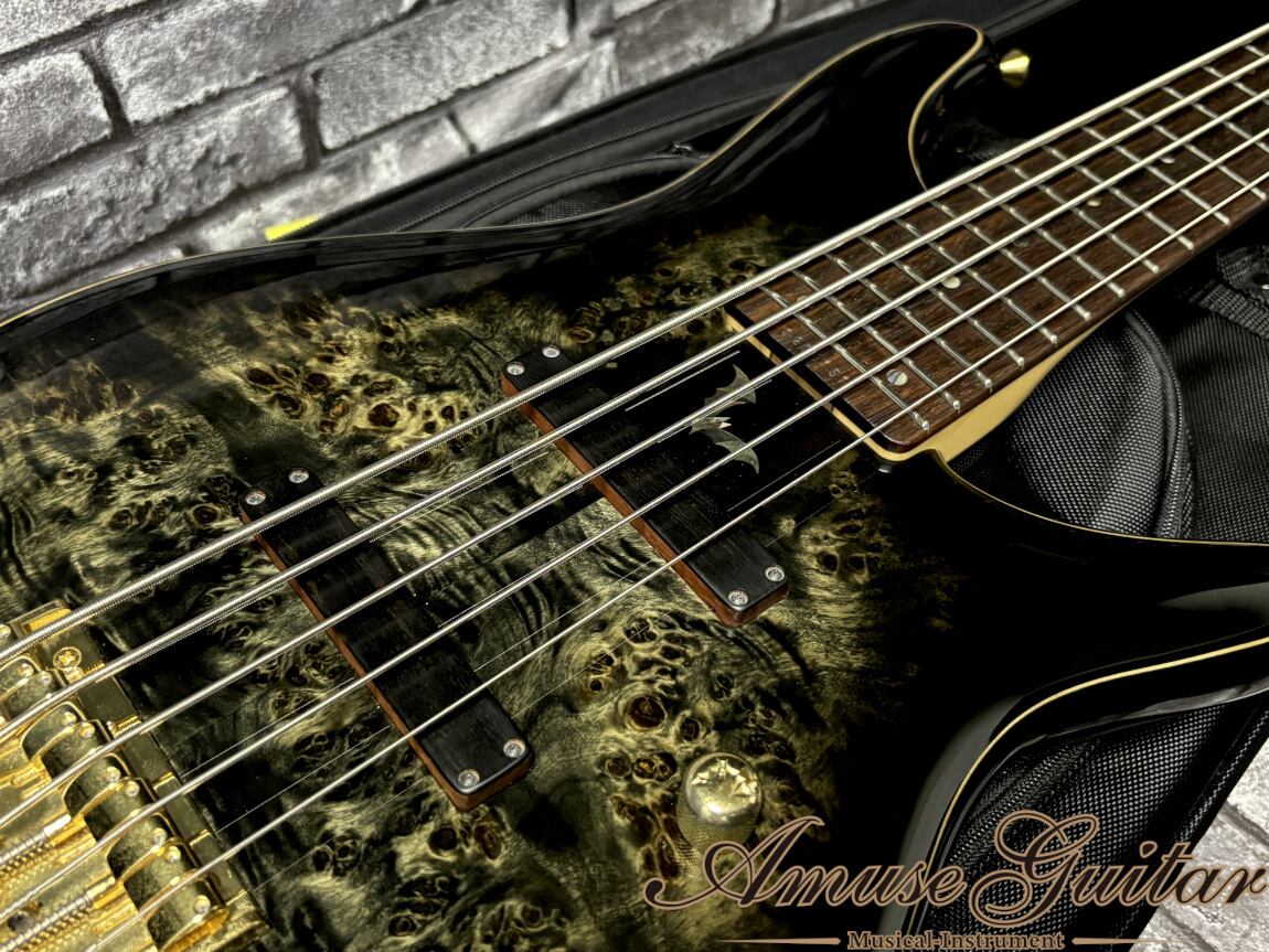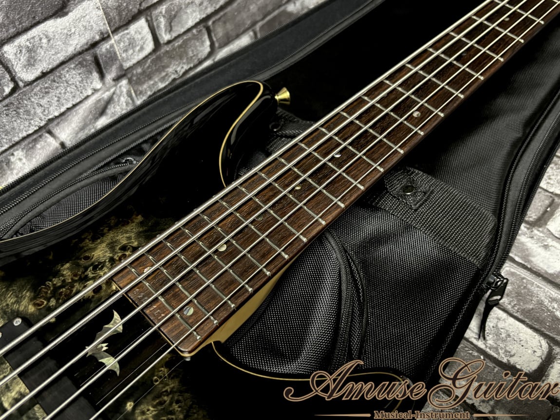 今回ご紹介させていただきますのは、その5弦NB。35インチのスーパーロングスケールから放たれる極上のハリ感を持つ鳴りと、低音のクリアさ、パッシブスペックだからこそごまかしの効かないサウンドが本機のクオリティを証明している極上の仕上がり。杢目の高級感と、実用的サウンドが高次元で融合したオススメの逸品です。
