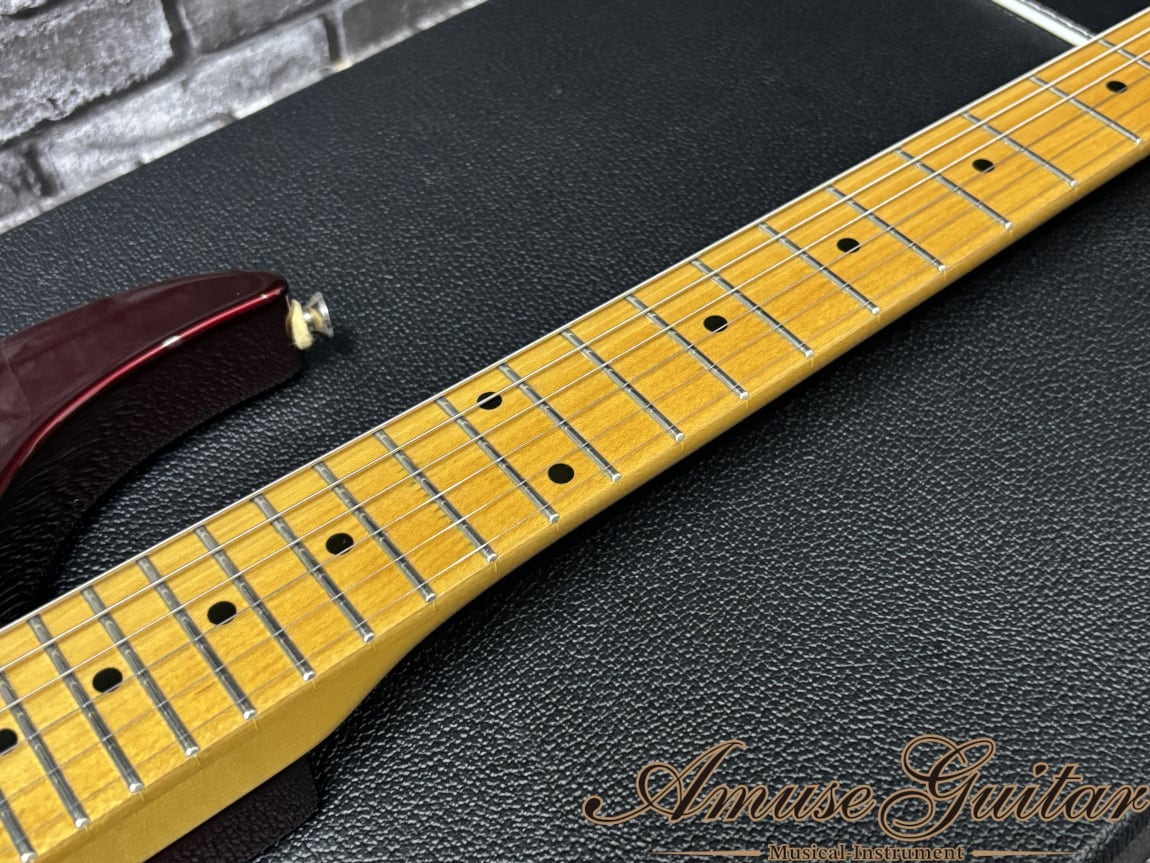 状態につきましては打痕、スレ、ダイレクトスイッチ部パーツ交換がございますが、その他特段の問題点は無く、ストレスなく演奏可能です。ネック状態も問題なく、トラスロッドの余裕もシッカリと確認済み。フレット残りも約7~8割残りでばっちりです。付属品はアーム、ソフトケースです。※ハードケースは撮影用の物となります。