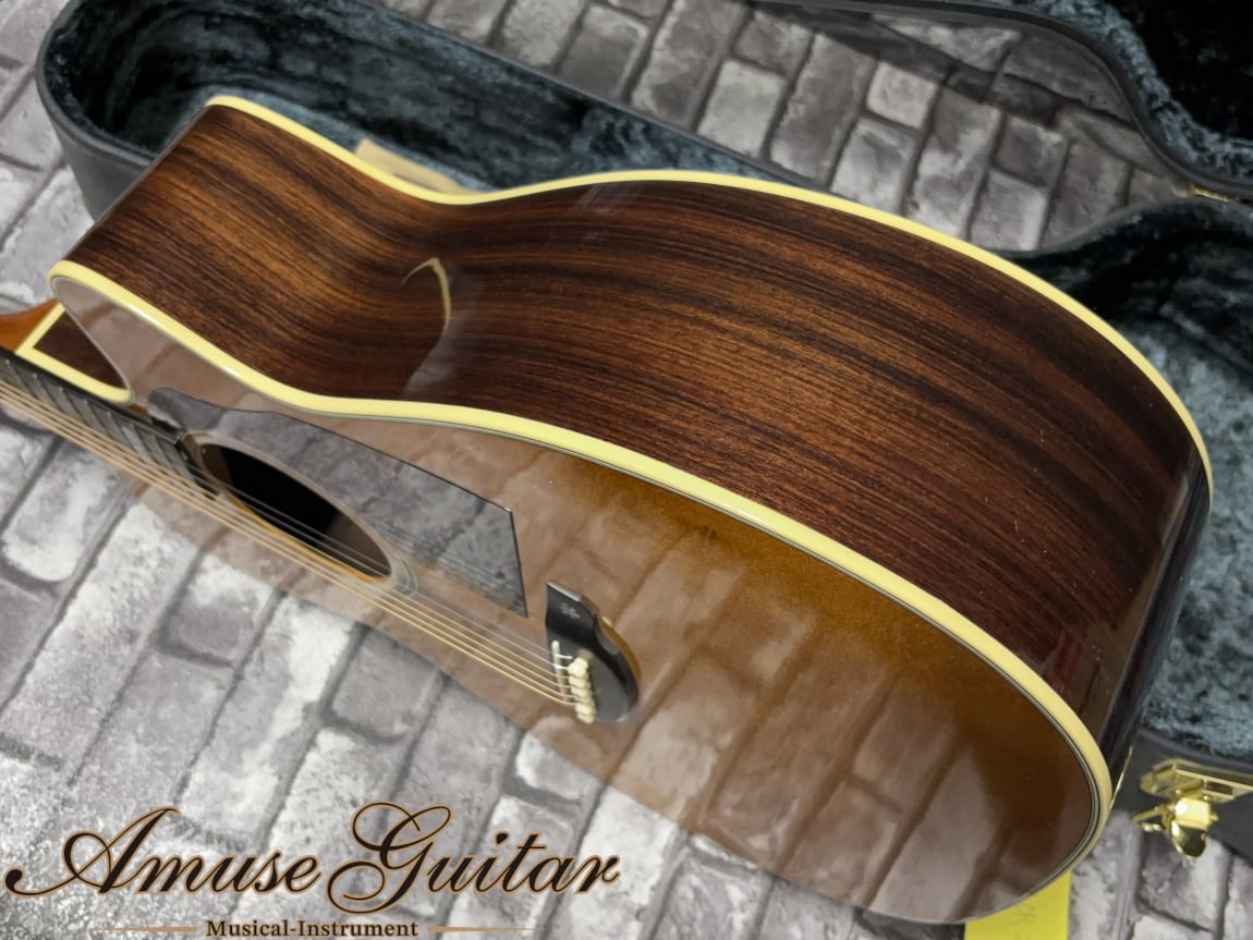 こちら本来はエレアコ仕様がカタログスペックとなっておりますが、当個体はファーストオーナー様の特注にて完全なアコースティック仕様。生鳴りを最大限に活かす設計となっており、ローズウッド単板らしい奥行きと、Shelly特有の芯のある立ち上がりがしっかりと感じられる一本です。