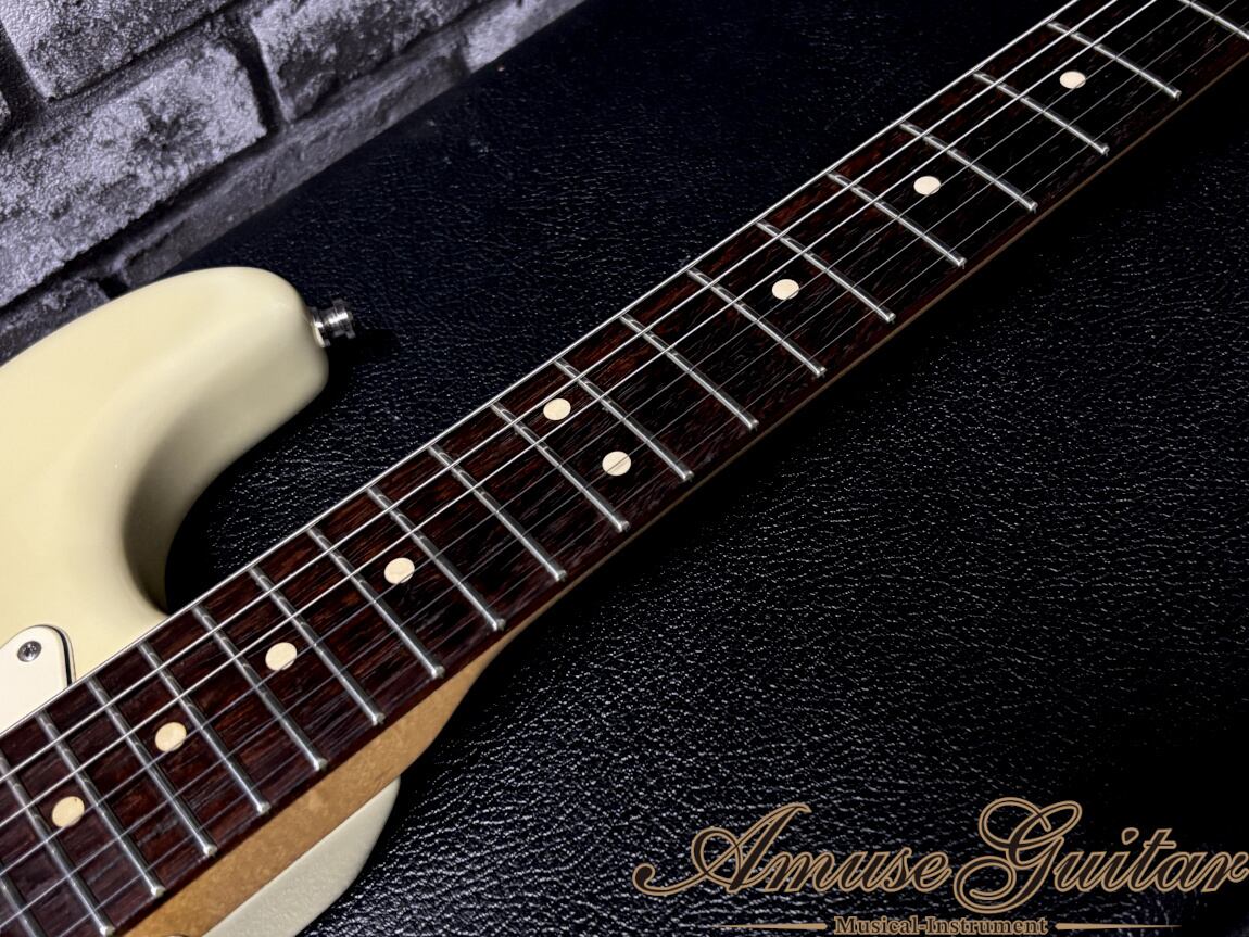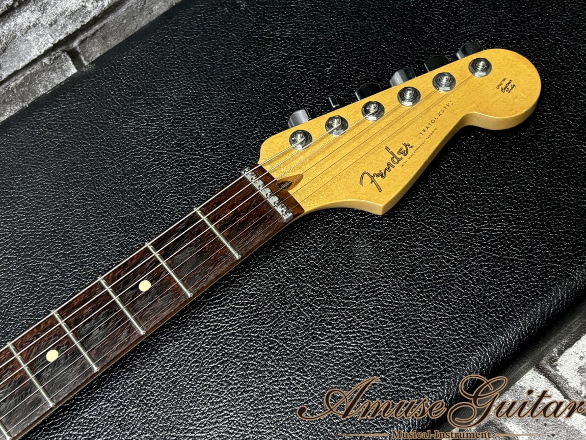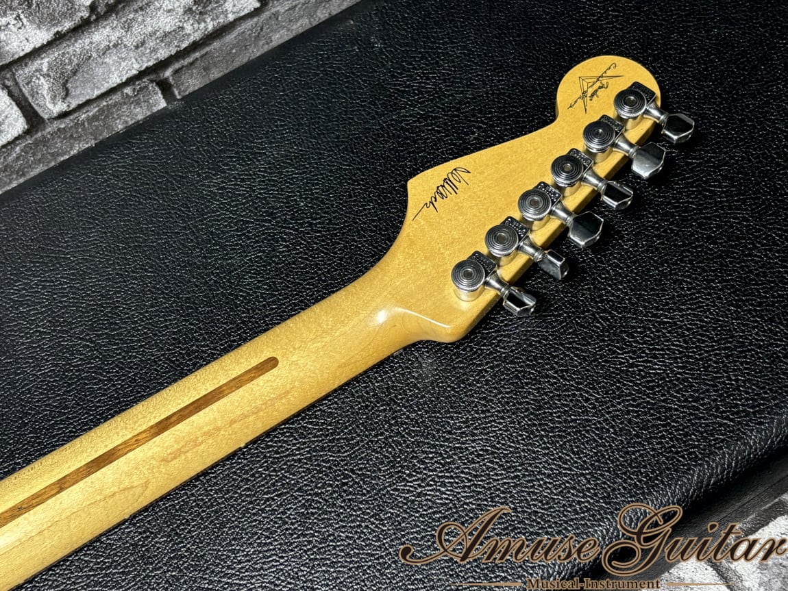 今回ご紹介させていただきますのは、フェンダーカスタムショップにて製作されたジェフベックシグネイチャーモデルとなります。サウンドも唯一無二のハイエンド・クリスタルトーンで生前のジェフ本人の愛用にとどまらず、布袋寅泰氏もメイン機ばりの使用頻度で愛用する程の逸品です。レギュラーラインとは別セクションにて、厳選された材、厳選されたビルダーの手により生産されるシリーズ。更に今回の一本は、特段人気なLSRローラーナット採用の一本です。