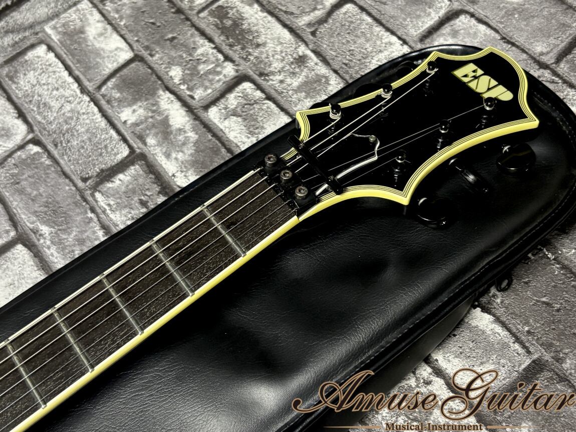 1998年にファーストオーナーである前所有者様が渋谷のESP直営店にて購入した本機。購入後ほとんど使用されず、大切に保管されていたことから、軽いスレやパーツのくすみなどの経年変化こそあるものの、その他特筆すべきダメージは見受けられず、フルオリジナルかつ、一部の保護シールが残った驚きの美品コンディションをキープしております。演奏面の要となるネック状態においても、トラスロッドの余裕もしっかり確認済み。フレットも製造時から低めのものを採用してはいますが、ほとんど減りを感じない状態です。付属品としましては当時の購入時保証書、レンチ、アーム、オリジナルギグバッグ/革製ケースとなります。