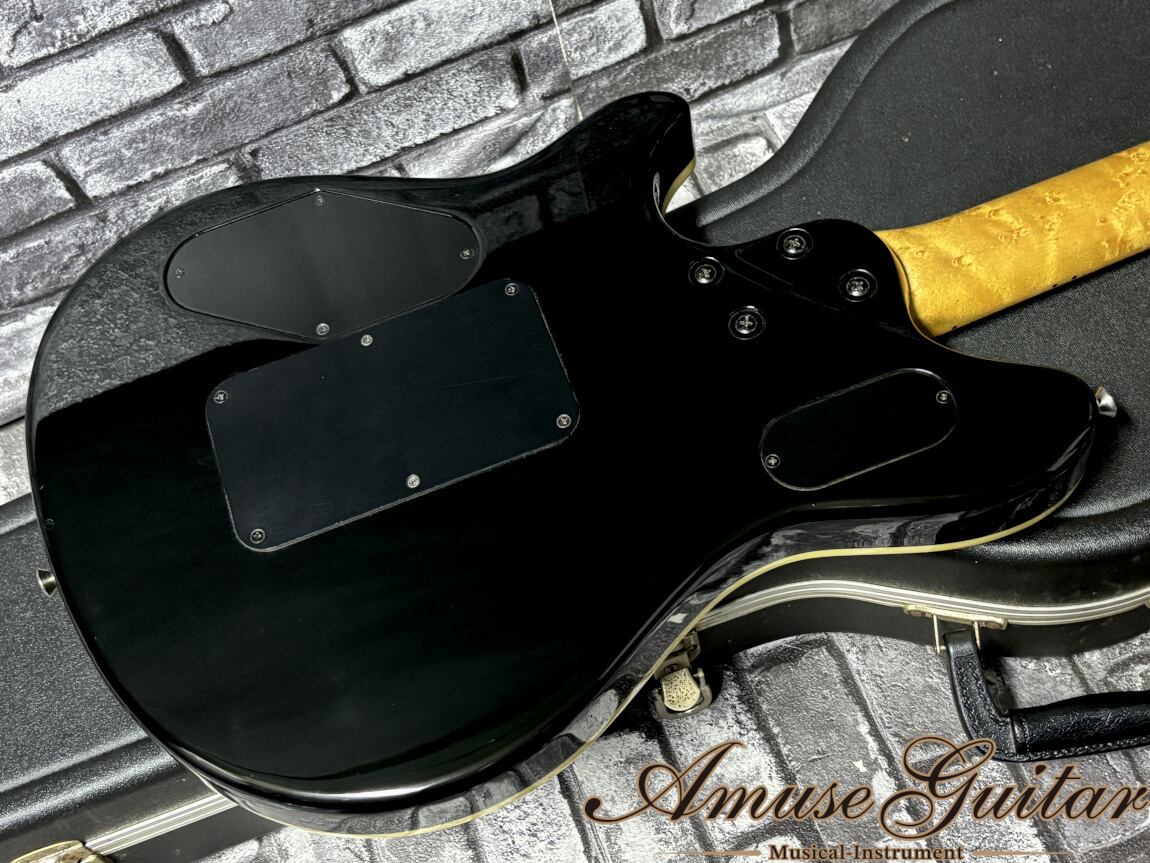 最後に状態としては、こちら2000年の個体となり既に26年程の歳月が経過しておりますが、年式の割に非常に状態の良いクリーンコンディション。ボディに数か所打痕や、スレがいくつか見受けられますが、塗装のツヤも綺麗に残っております。ネックはオイルフィニッシュという事もあり使用による多少の黒ずみが見受けられますが、同年代の他個体と比較すれば良好な状態です。総合的に見て年式を考慮すれば充分に美品と呼べる良好な個体となっております。トラスロッドの余裕も確認済みで、フレット残りも約7割程とまだまだ使えます。上述の通りアップグレードが施された個体となっておりますが、オリジナルパーツが(アーム&ハウジング、トレモロブロック、ストリングロックスクリュー)が付属します。その他、大変希少なスペックシート、書類、ケースはオリジナルハードケースが付属致します。