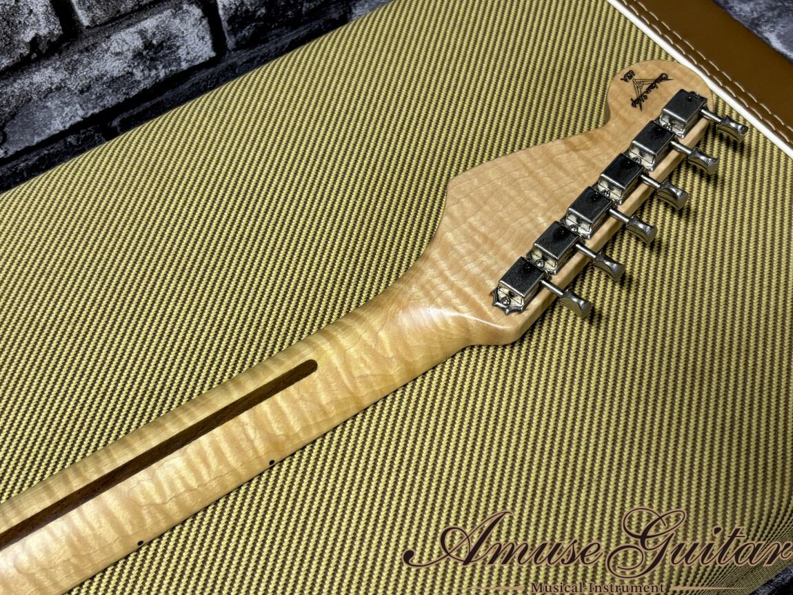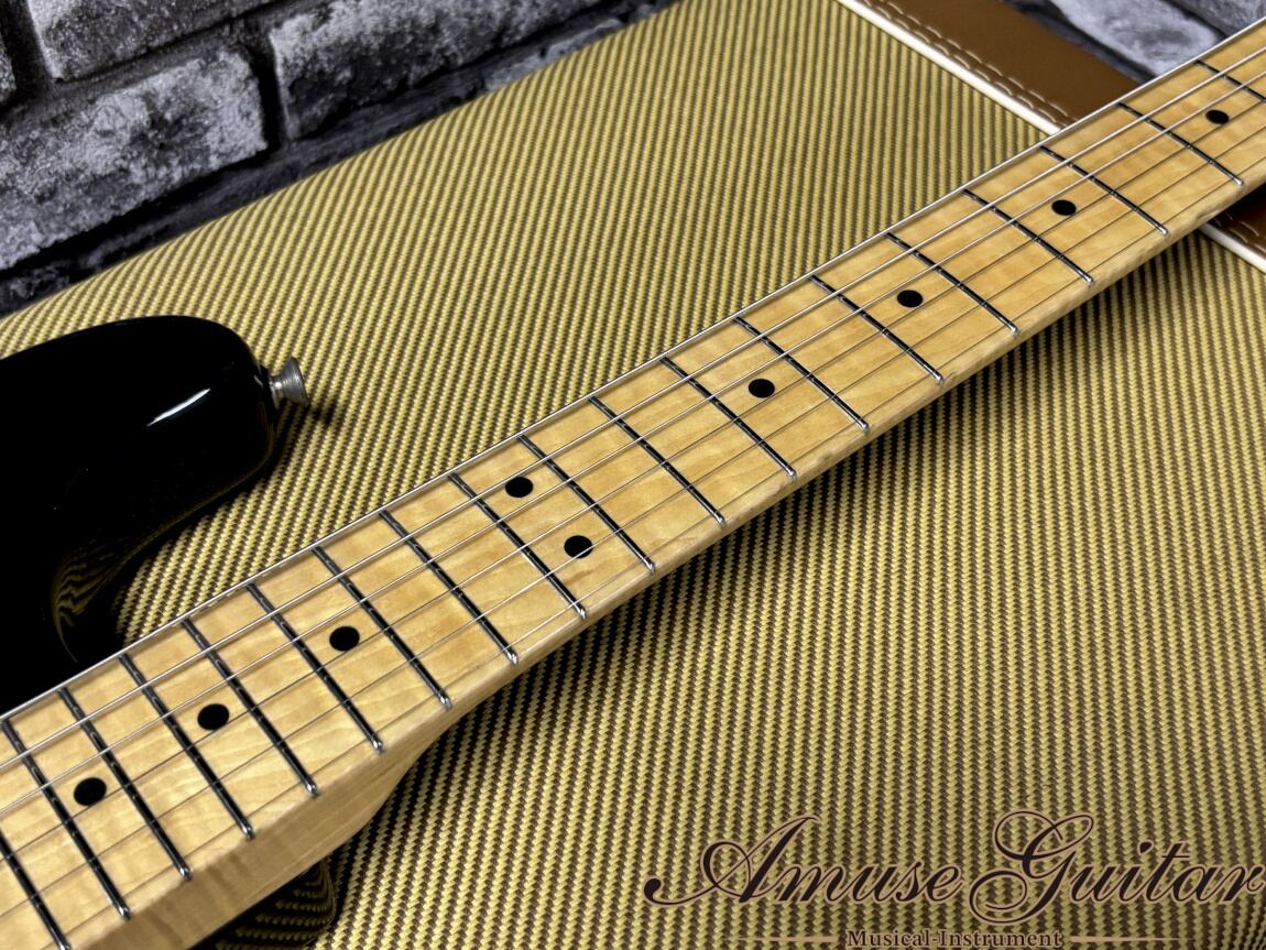 今回ご紹介させて頂くのは、その”ブラッキー”スペックを基にFender社の特別ラインCustom Shopにて製作したシグネイチャーモデル。ブラックのグロスフィニッシュや、特徴的なネックシェイプが確認でき、優れた弾き心地が体感できる仕上がり。そちらに加え今回入荷品はネックに極上のフィギュアドメイプルを採用した珍しいスペック個体となり、状態や交換点などはございますが要注目の一本となります!