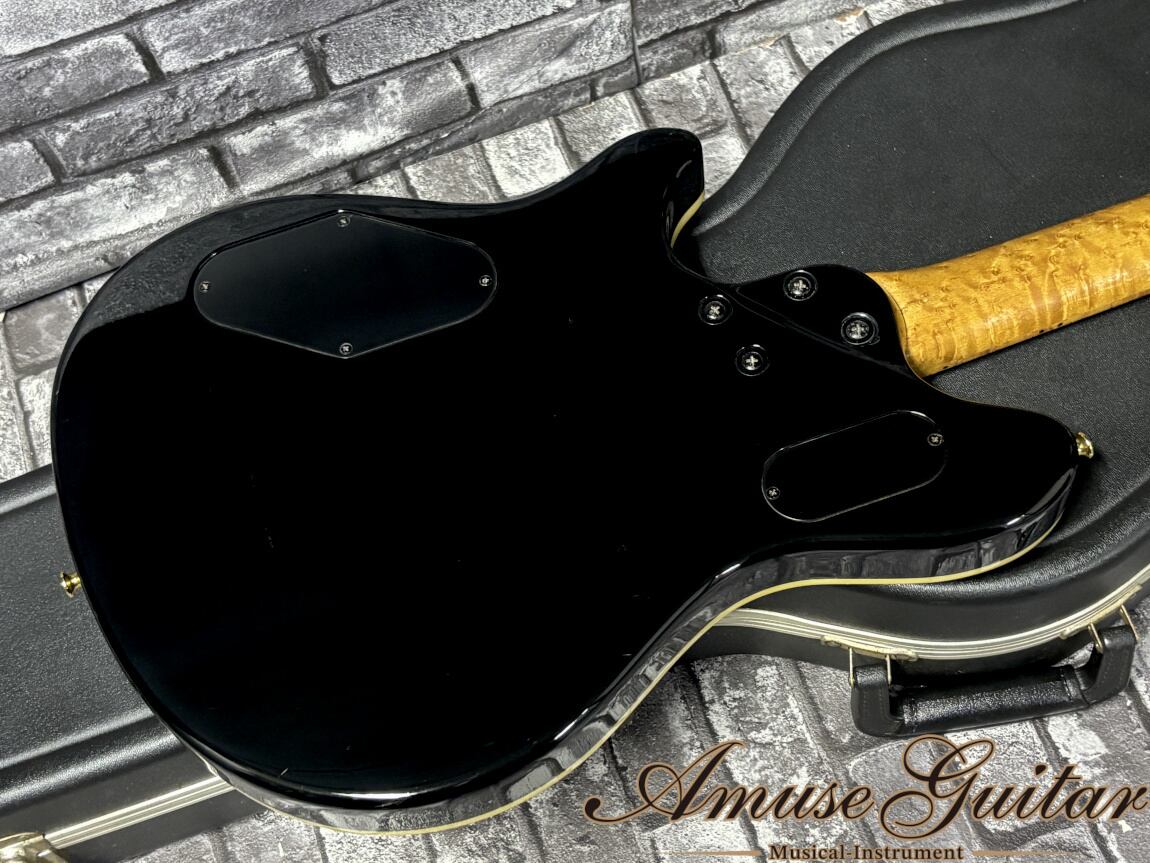 最後に状態としては、全体的に打痕やスレ傷、スクラッチ等が見受けられますが、ボディトップ側のダメージは少なく、塗装のツヤも非常に美しく残っており、ゴールドパーツのメッキ状態も良く、またありがちなネック裏の黒ずみも軽微にて、22年前の製作品という事を考慮すれば充分に美品と呼べる良好なコンディションです。演奏面としてもネックコンディションは良好でトラスロッド余裕も確認済み。フレットも目立った減り無く8部山以上残っております。パーツ類に関してはストラップピンと、ポットのみオーバーホール時に交換されておりますが、その他は全て当時からのオリジナル状態をキープ。ケースもオリジナルハードケースが付属致します。