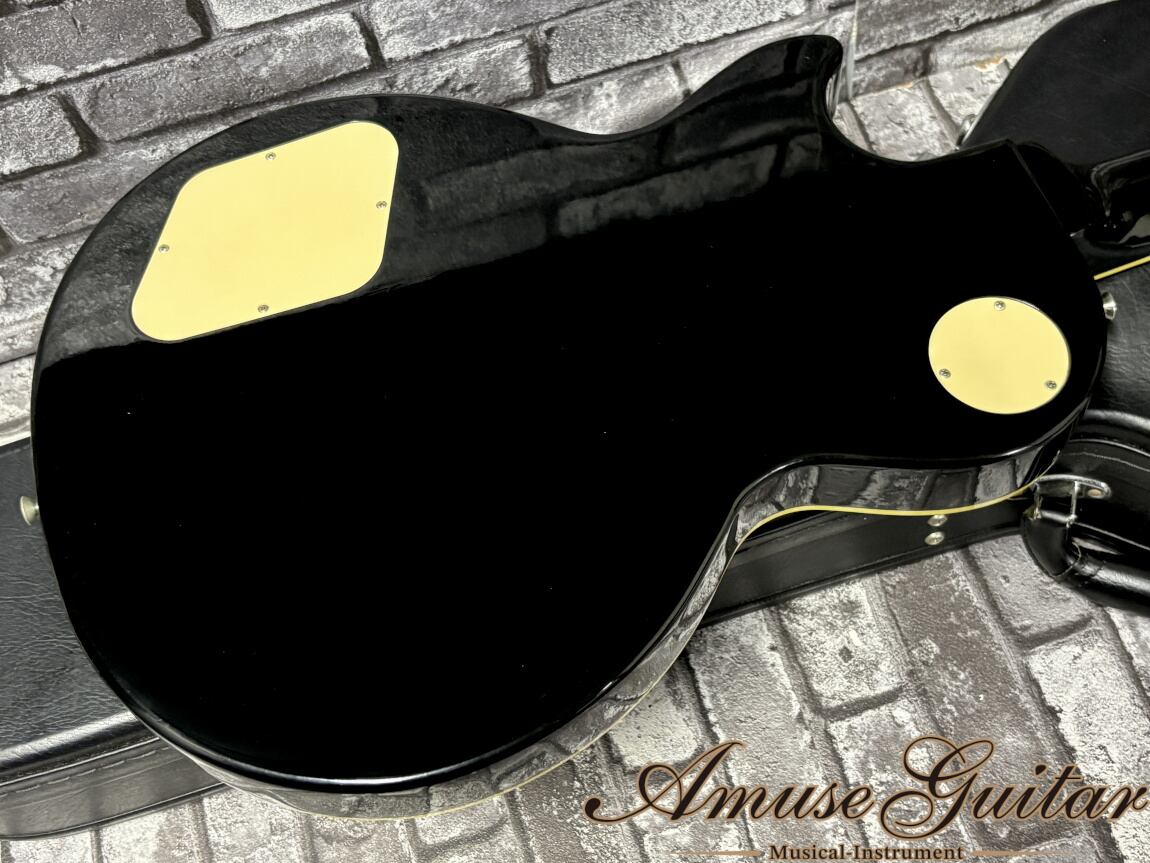 こちらのスペックにつきまして。ボディはソリッドマホガニーバックに削り出しのソリッドハードメイプルトップを組み合わせた、レスポールらしい王道の木材構成。ネックはソリッドマホガニーによるセットネックにて、ネックピックアップキャビティ内まで深く差し込まれるディープジョイント構造を採用しており、高い剛性と豊かな鳴りを支えております。ネックシェイプは、低音弦側を丸みのあるDシェイプ、高音弦側をややフラットなCシェイプとした2010 Asymmetrical Profileを採用。握り込んだ際の収まりも良く、現代的な高い演奏性も本機の大きな魅力です。ピックアップにはGibson USA ’57 Classicハムバッカーを2基搭載し、往年の”PAF”を意識した仕様となっております。さらに2つのトーンノブはプッシュ/プル式となっており、シリーズ/パラレル切替にも対応。その他、U.S.製Switchcraft 3Wayトグル、Mallory-150コンデンサ、Epiphone StrapLocks、16:1ギア比のGroverロッキングペグ等、実戦的なアップグレードが随所に盛り込まれております。
