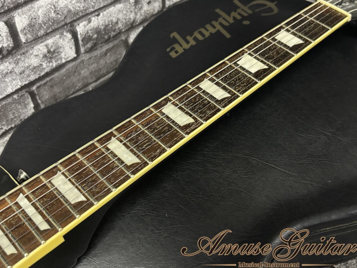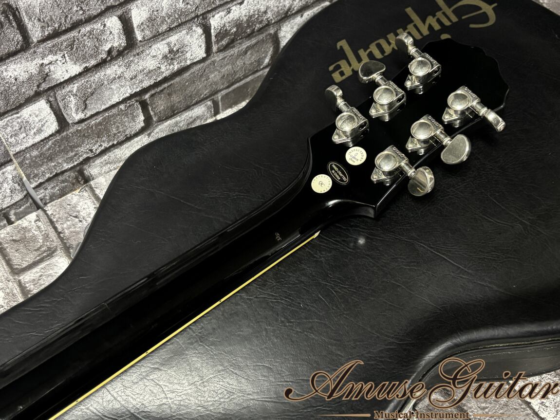 気になる状態につきましては、年式相応の細かな打痕やスレ、パーツ若干の経年と言った軽微な使用感こそ見受けられるものの、全体としてコンディションは良好で、しっかりとお使い頂ける内容を保っております。大きく目立つダメージや演奏面に支障のあるような問題もなく、これから長く実用していく一本としても安心感のある個体です。ネック状態も良好でトラスロッドの余裕も確認済み。フレット残りも8割以上とまだまだ使えます。付属品につきましては、オリジナルとなるエピフォンプレミアムハードケースです。