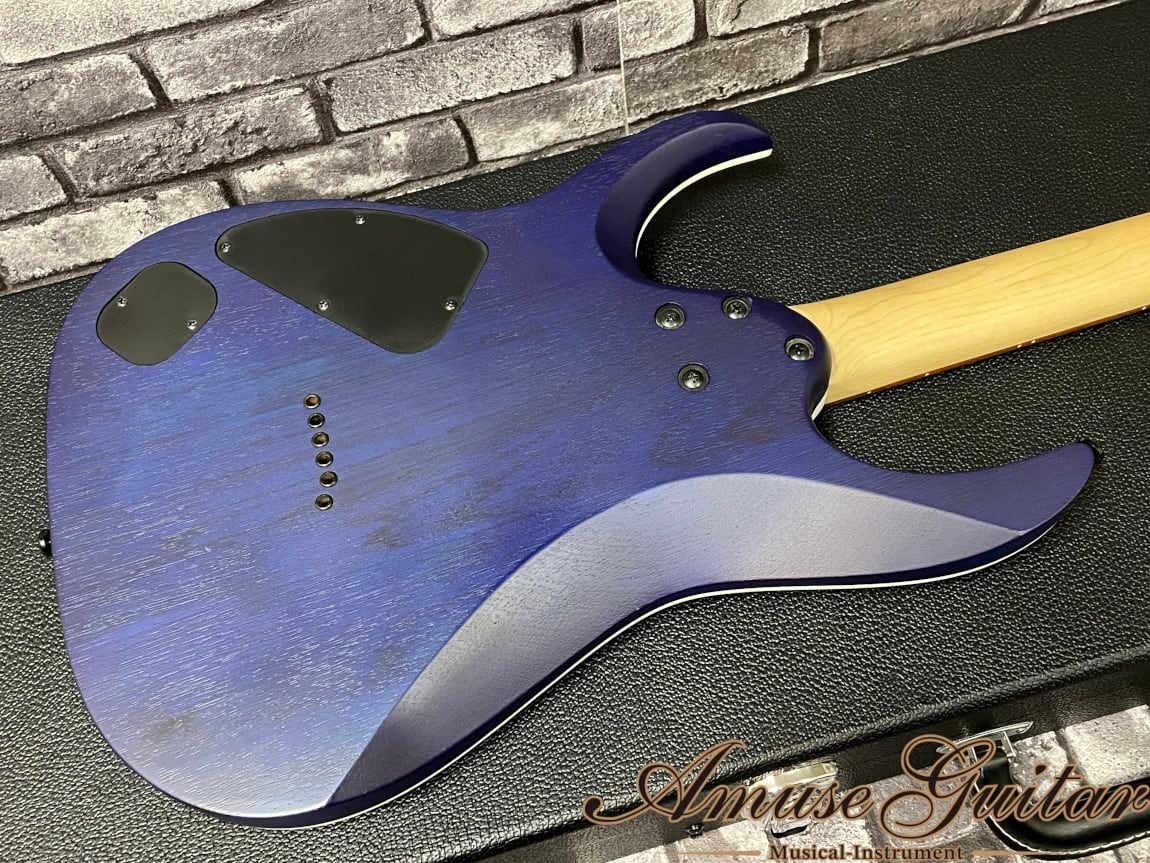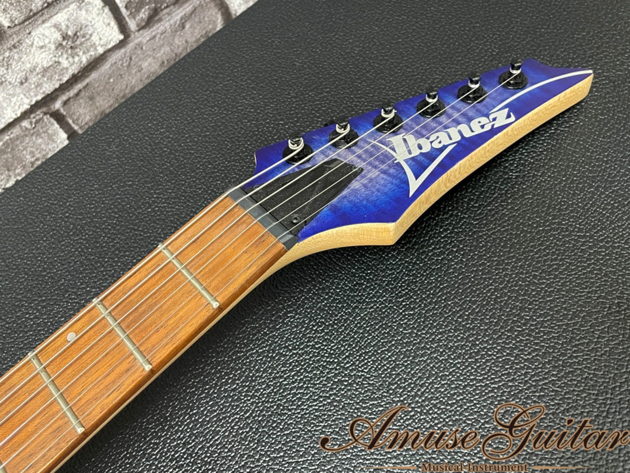 今回ご紹介させて頂きますのは、そのアイバニーズ定番RGAの一本。鮮やかな青色のフィニッシュに、高級感のある杢目、そしてアイバニーズらしいプレイアビリティの高い仕上がりになっています。