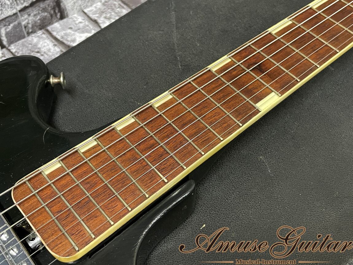 今回今回ご紹介させて頂きますのはそのテスコからリリースされていたMJ-2L。ピックアップや、アルミ製ノンストライプピックガードなどの仕様から初期物と思われる一本。小振りで薄めのソリッドボディ、テスコ様オリジナルの通称「タツノオトシゴ」ヘッドが特徴的です。その他としましては、ピックアップ数と、カラーこそ違いますが、東京事変の映像作品内でも確認できる長岡亮介氏ご愛用品の同シリーズとなります。