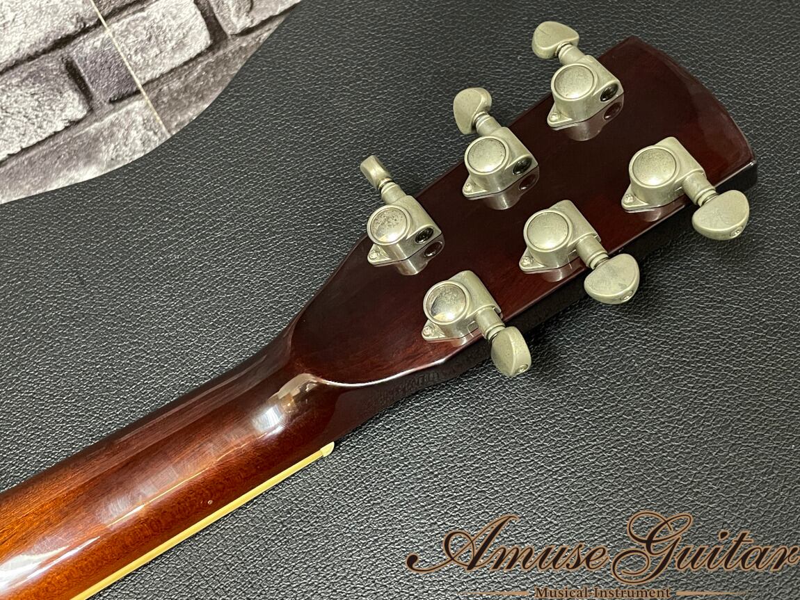 気になる状態ですが、ボディトップにピッキングスクラッチ、ボディバック淵に打痕がございますが、大きく損傷した目立つダメージや、演奏上問題になるポイントなどは無く、20年近くの歳月を考えると非常に綺麗なコンディションです。ネック状態は、1フレットにバズ音がございます。トラスロッドの余裕はシッカリと確認済み、フレットの残りは凹みもなく9割以上残りとなっています。付属品はハードケースになります。