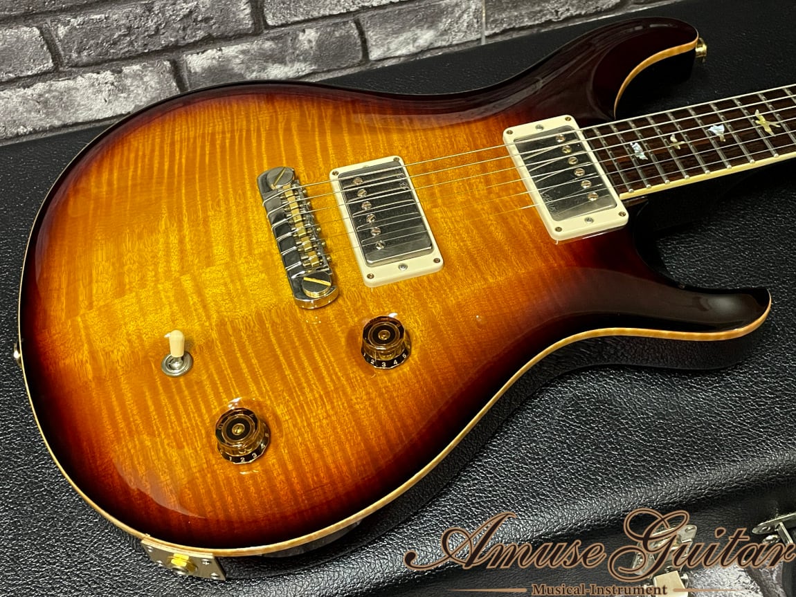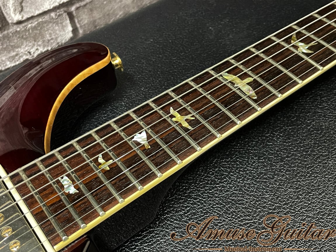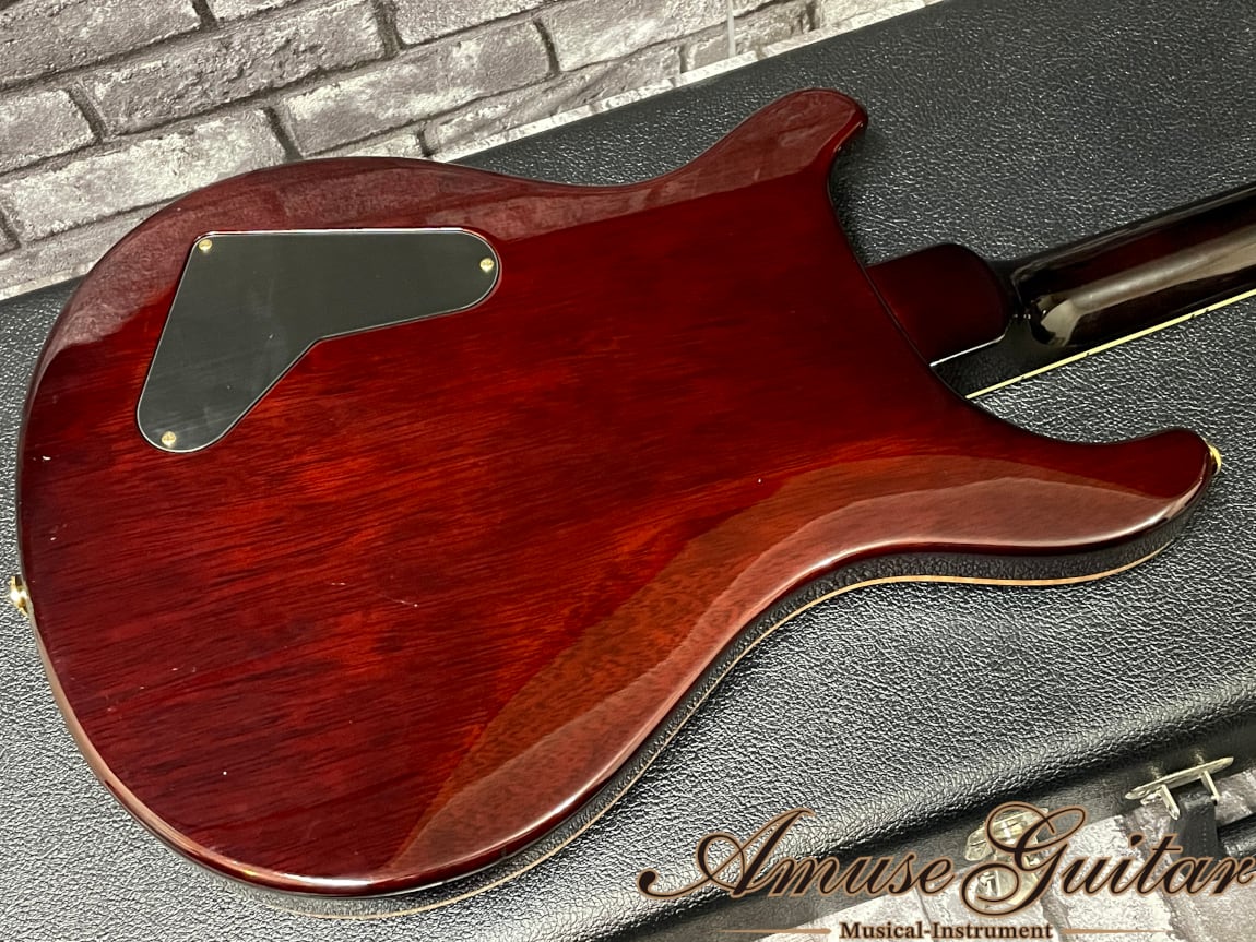 何と言ってもボディバック&ネックへ特別に使用されたコリーナ材のサウンドが特徴となっており、ワイドなレンジと、優れた立ち上がりが、一聴して特別な一本だと確信する圧倒的な説得力のあるサウンドです。ボディとネックの一体感のある鳴りは握る手からビリビリと感じられ、その太く甘いナチュラルサスティーンも絶品の一言。更にピックアップには、PRS 58/15をリア、フロント共に搭載。ヴィンテージハムバッカーを意識したサウンドデザインとなっており、個体の良さを一段と引き立たせるオールマイティなキャラクター。コリーナ由来の明るく歯切れの良いサウンドはディストーション時は抜群のヌケに、クリーン時は高~中音域のハイエンド然とした”分厚さ”も感じる事が出来ます。