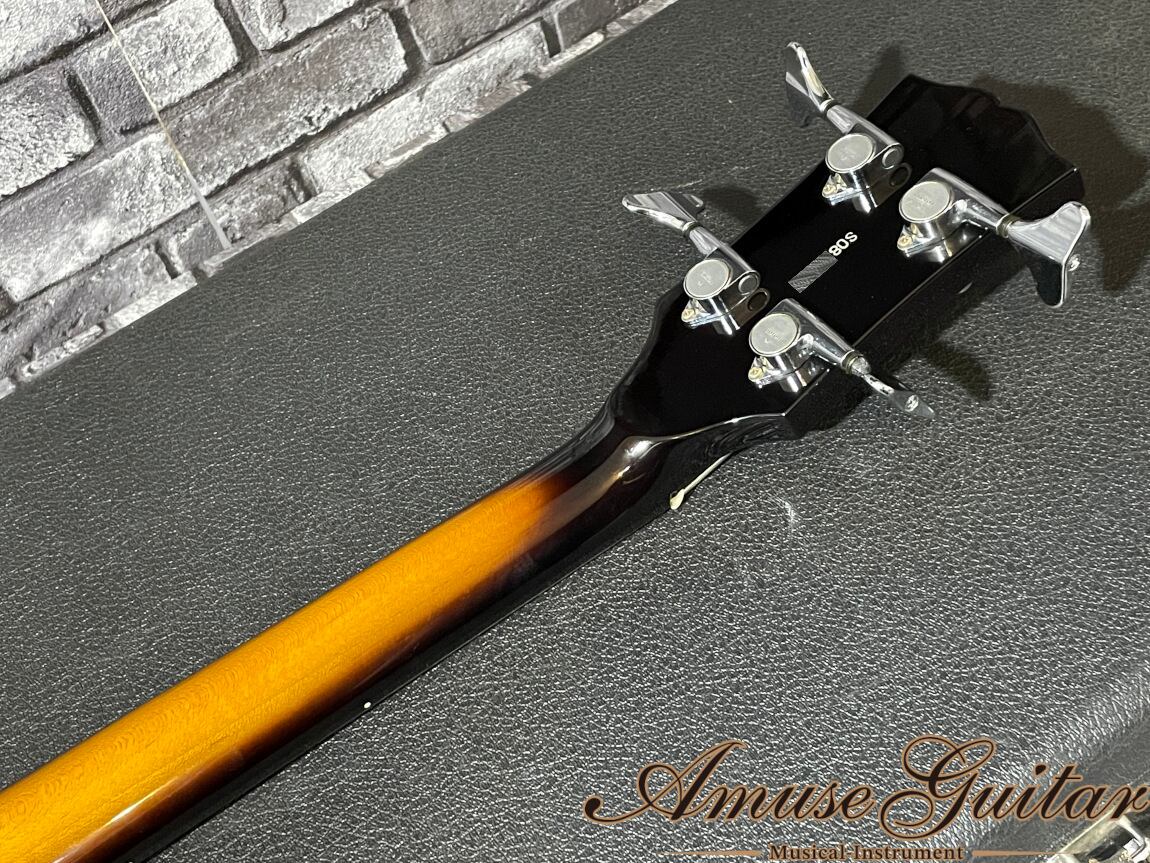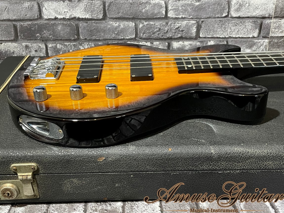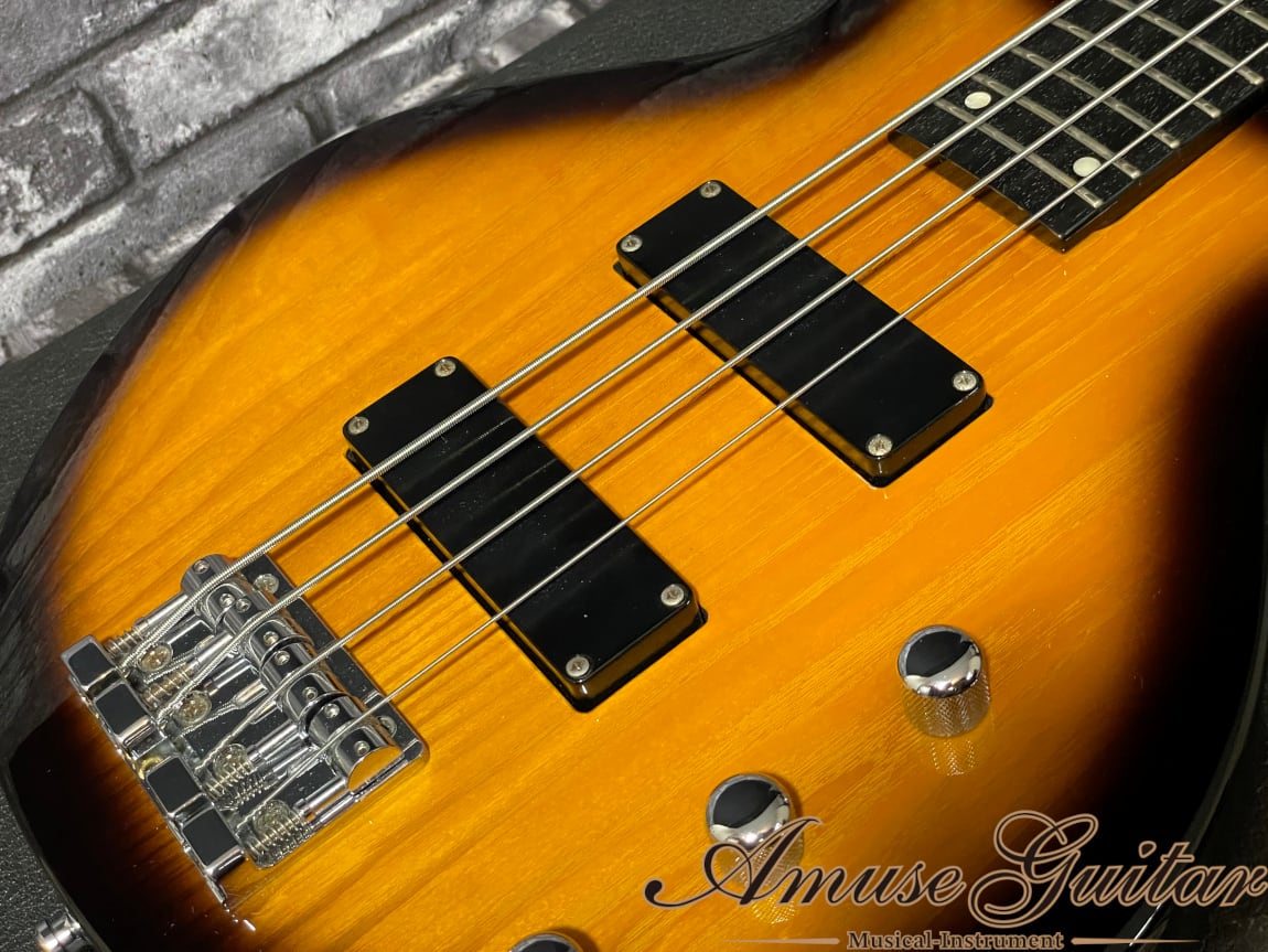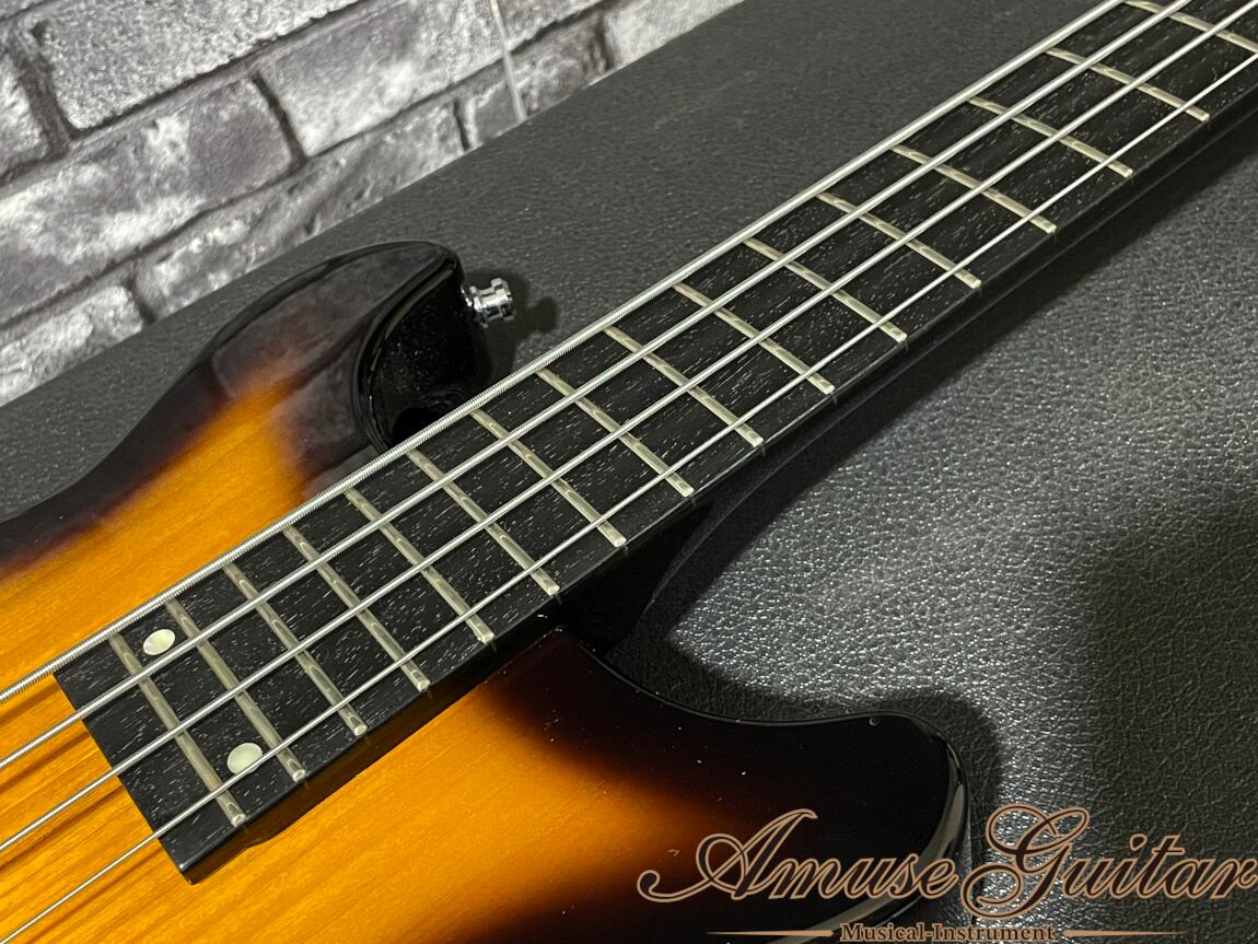 そしてサウンド面につきましては、あの”ゴリッ”としたハードながら、木材鳴りも意識した、ファンには耳馴染みのある【あのサウンド】が手に入ります。ヴィンテージベースを手にしているかと錯覚する程に、ボディの響きがネックの先に気持ちよく抜けていく一体感のある素晴らしい鳴りを誇ります。ピックアップはセイモアダンカン社のSJB-1をフロント/リアに搭載し、それを直列(シリーズ)にて配線。圧倒的な音圧、反応の速さ、細かなニュアンスの拾い上げのサウンドのまとまりが高次元にて融合。バンドアンサンブルの中でもしっかりと個性を主張しながらも、抜群の音ヌケを発揮し、尚且つシンプルな構造は扱いやすさも抜群です。J氏がシーンの先頭に立ち、後続バンドのサウンドがJ氏の様になっていったかが判る、素晴らしいキャラクターを持つベースです。