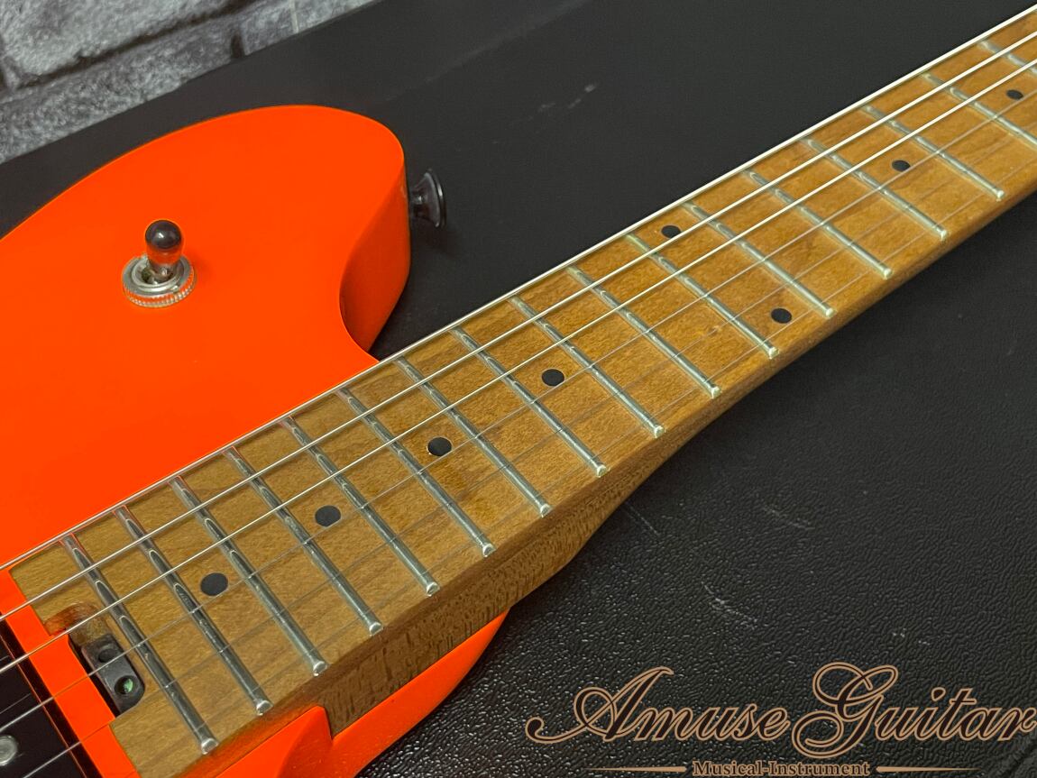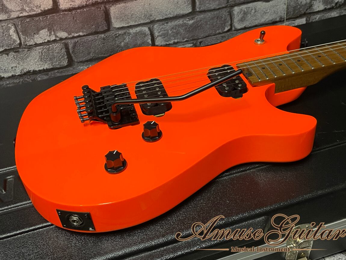 こちらのスペックは、エディといえば!のバスウッドボディに、耐久性/音質にも優れたベイクドメイプル(ローステッドメイプル)のネック&指板のボルトオン構造です。こちらのモデルにはボディにグロスフィニッシュにてネオンオレンジカラーを採用しており、80’sHR/HMファンはもちろん、他人とは一味違うカラーをお探しだった方には非常におススメできる目にも鮮やかなルックスです。ジャンボフレットに12"-16"のコンパウンドラジアスを採用した薄めのネックはプレイアビリティも抜群。コントロールは1ヴォリューム、1トーン、3WAYピックアップセレクター。ブリッジにはEVHオリジナル刻印のFloyd Rose Specialを搭載で、激しいアーミングも可能でモダンなプレイでもバッチリとハマります。その他としてはネックエンドにホーイルトラスロッドを採用しており、ネック調整も容易に行えます。