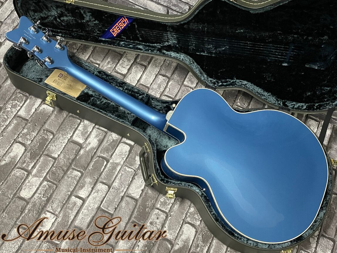 今回ご紹介させて頂きますのは、そのグレッチが2019年に極々少数のみ販売した限定生産品の一本。17インチボディの”グレッチといえば”のファルコンスタイルに、目にも鮮やかなフィニッシュを採用し、更にはアッセンブリーにもアレンジを施した意欲的な一本。限定販売後即売、そしてなんと好評に応えまさかの再限定販売を決行した話題のモデルとなります。今回入荷品は2019年製作の個体となり、更には使用感も少なく美しいコンディションを保った素晴らしい一本です。