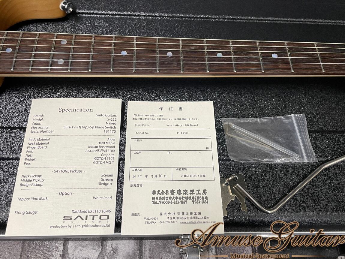 Saito Guitars S-622 Alder # Naked 2019年製【Custom Order Spec】”N-Mint Condition!!” w/Hard Case 3.22kg