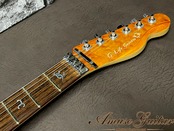 そしてルックスだけでなく、サウンド面へも大きな拘りを感じさせる内容となっており、フロント&リアにはブランド5周年記念に製作されたアルニコⅤマグネットを採用し、タップ時の音の減衰を考慮しコイルのターン数を増やした1230AL5ハムバッカーを、センターには同様にアルニコⅤマグネットに加え10,000ターンのハイパワーかつ、タップ時には7,000~8,000ターンにて抜き取る事でナチュラルなシングルサウンドを得られる1118AL5シングルコイルを搭載。またフルテンでもサウンドに影響を与えてしまうトーン回路は排除し、よりダイレクトなPUサウンドを追求。メインコントロールは1Voのみながら、リアへのダイレクトスイッチ、各ピックアップのTAP⇔OFF⇔ONセレクトスイッチが搭載され、シンプルで直感的に使える仕様ながら非常に多彩なサウンドメイキングを可能とし、幅広いジャンルに対応するまさに拘りのプロ仕様となっております。サウンドキャラクターとしても、王道のメイプルトップ&マホガニーバックかつ厳選された極上材ならではの芯が強く粘りのある太いローミッド、倍音感溢れる奥行のある味わい、パワーのあるピックアップからの出力でもズバっと決まるエッジ感を併せ持ちます。また硬質なハードメイプルネックからは極上の音抜け&ロングサスティーンを実現します。どのポジション、どのサウンドメイキング時でもズバ抜けて高いサウンドクオリティを持ち、高いプレイアビリティも併せて、一度使用したら他のモデルに戻れなくなると思える程、パーフェクトと呼ぶに相応しい特別な一本となっております。