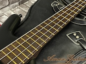 今回ご紹介させて頂くのは、その上位ラインとなるマスタービルトシリーズにて製作されたサムベースです。ストリーマーシリーズと並び人気のモデルとなっており、ジャズ/ファンク界隈から、ハードコアまで唯一無二の重低音にて世界的な人気を博しています。それに加え、海外含め、過去市場でもほぼ履歴のないソリッドブラックカラーのサテン仕上げ4弦モデルとなり激レアな一本となります。