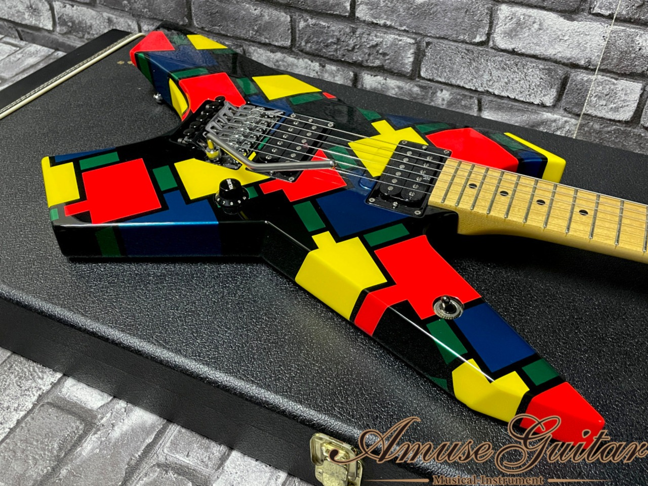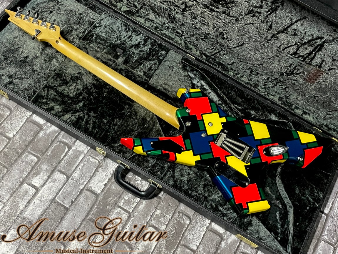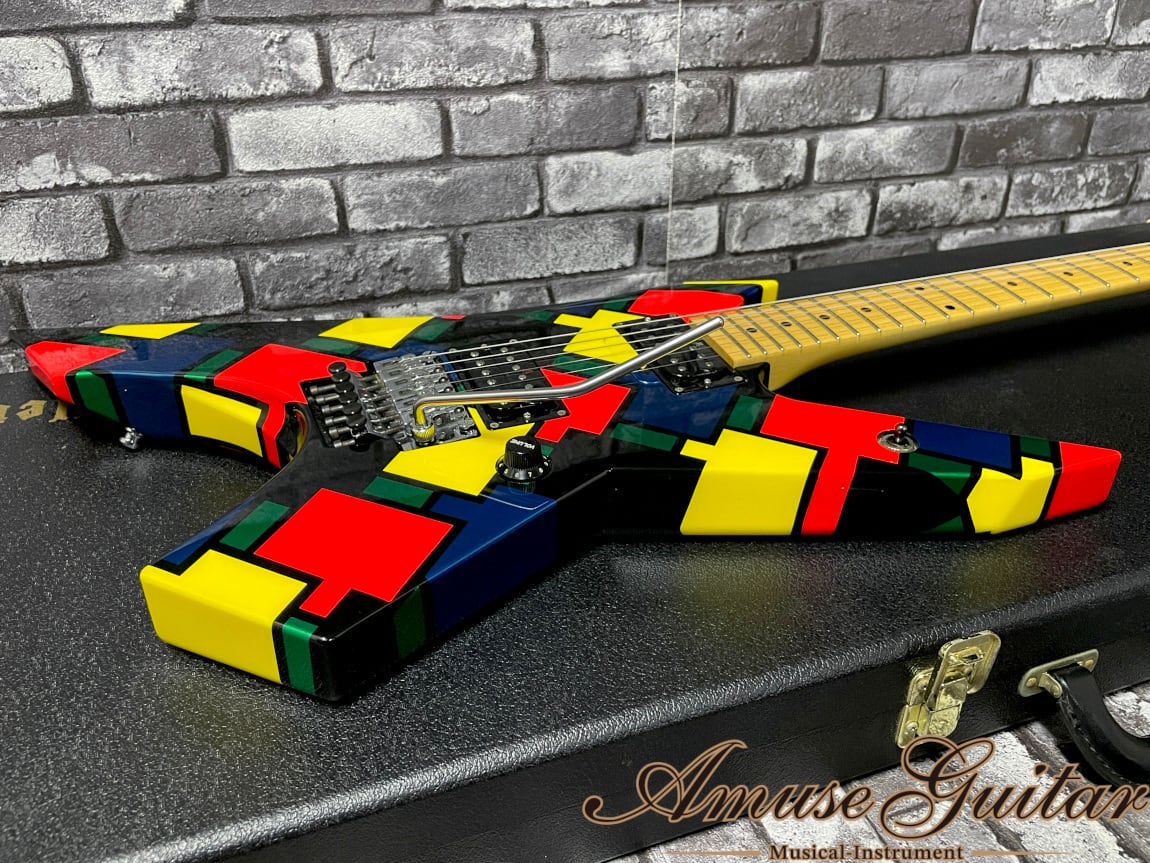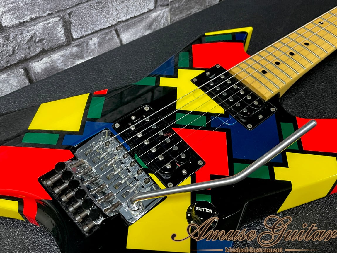 今回ご紹介させて頂きますのは、そのキラー発足のきっかけにもなった高崎晃氏のメインギターシリーズの”プライム”です。1988年頃より生産/開発が始まり、その先進的スペックはその時代に応じて更新/進化されていきました。高崎氏の要望を基に定番スペックを更に発展/応用し、進化したスペックとなっており、現在の高崎氏ステージ/レコーディングでも活躍する究極のモデル。そしてその中でもXよりTAIJIが加入した第三期LOUDNESSを特に彩った印象の強い、現在は廃番モデルとなる“モザイク”が美品コンディションにて入荷致しました。