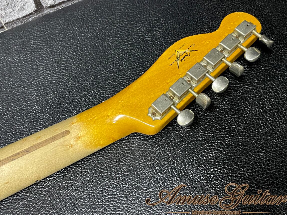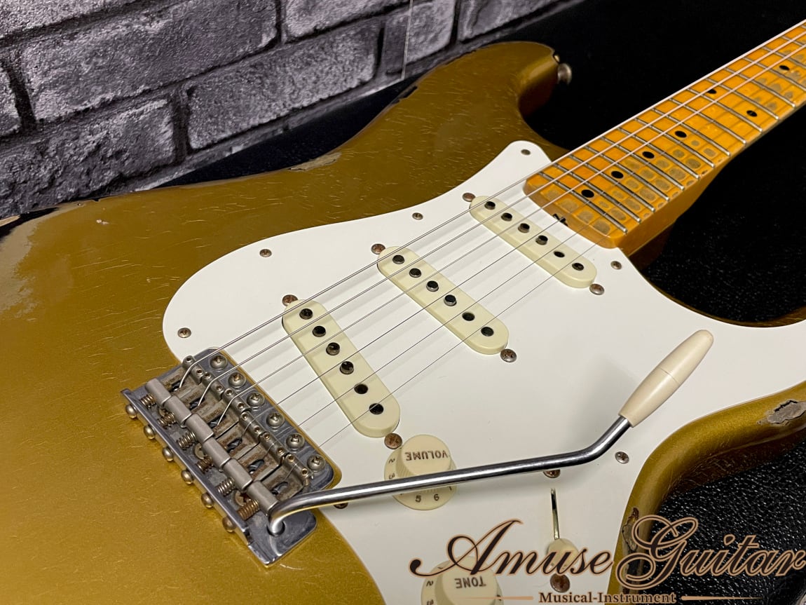 最後に状態としては、元々がハードレリック仕様となります為、どこからが後付けのダメージかの判断は難しくなりますが、見る限り後付けと思われる使用感があるものの、大きな違和感無く、ヴィンテージファンには堪らない使い込まれた激渋のルックスとなっております。演奏面としてはネックコンディションは良好でトラスロッドの余裕もシッカリと残っており、わずかなフレットの減りは感じますが、電装関係の不具合も無く、即戦力となってくれる一本です。付属品についても認定書をはじめとした一式(画像参照)が揃っております。ケースはインナーにCustom Shopの刺繍の入ったブラックトーレックスケースが付属致します。