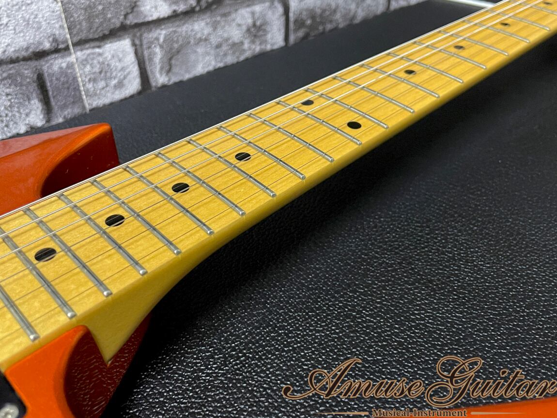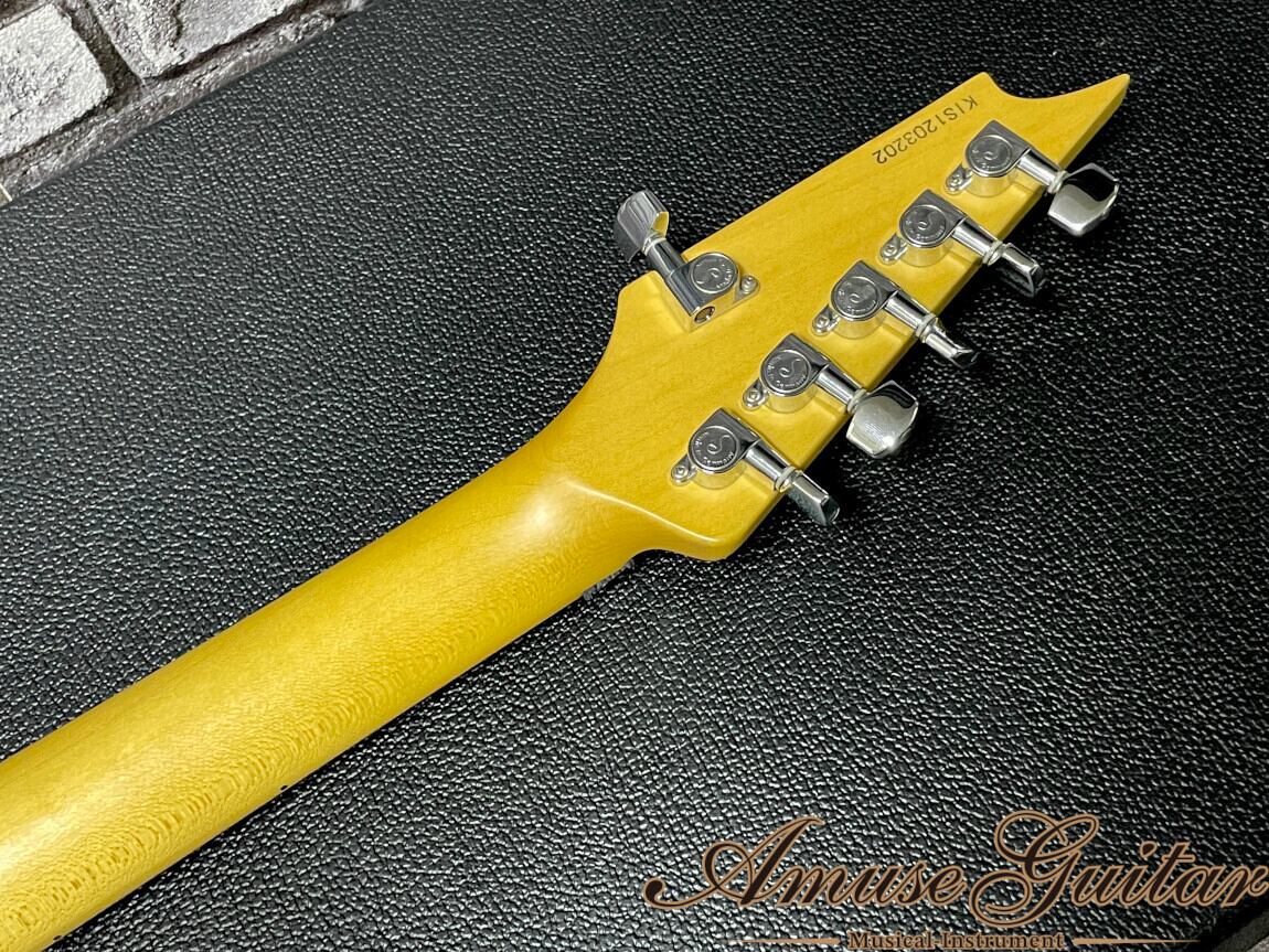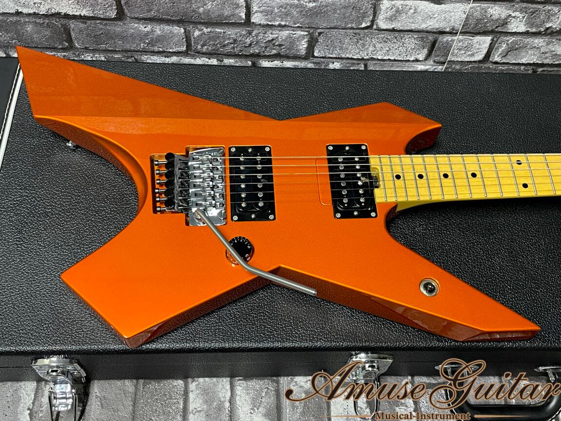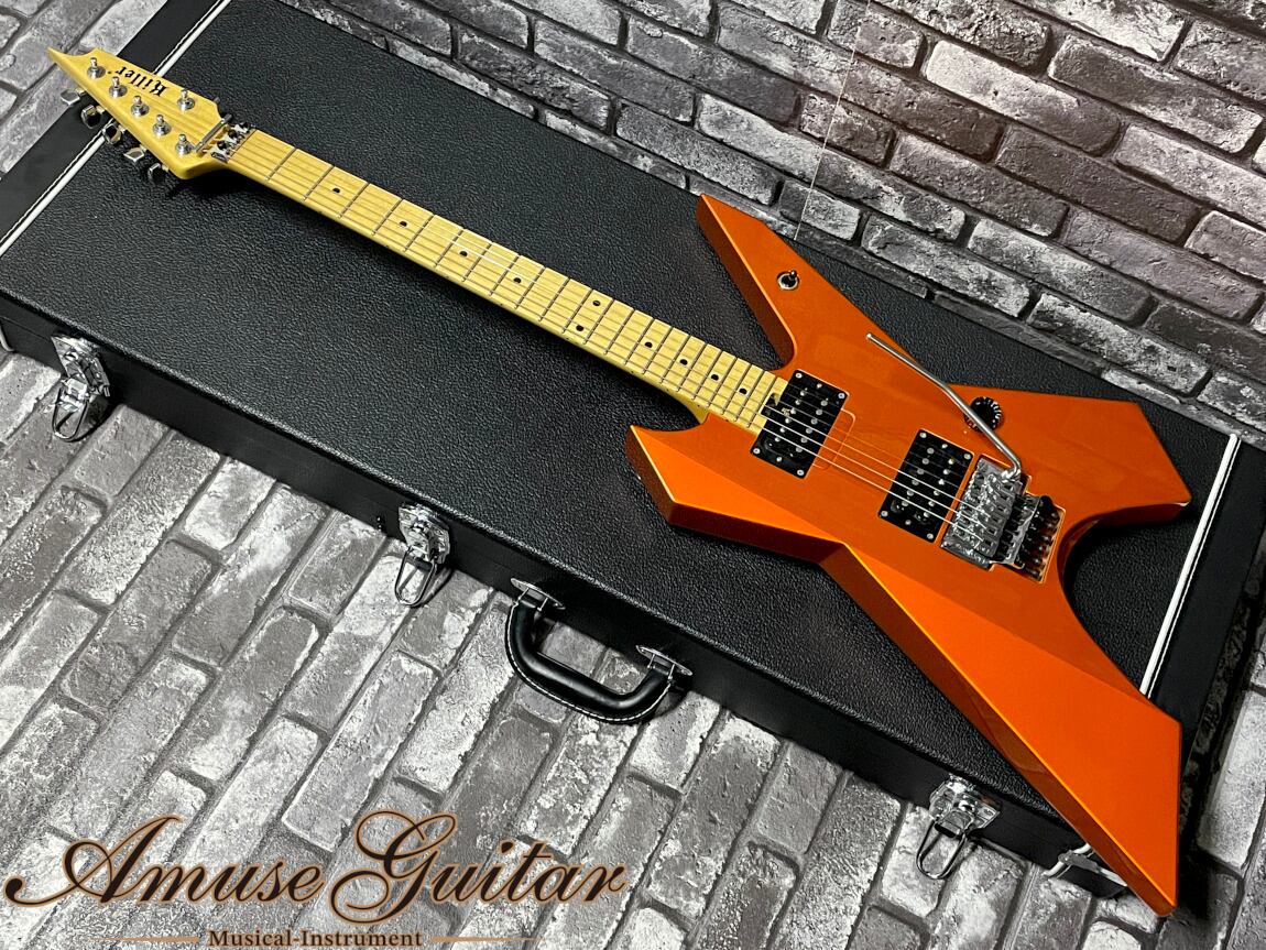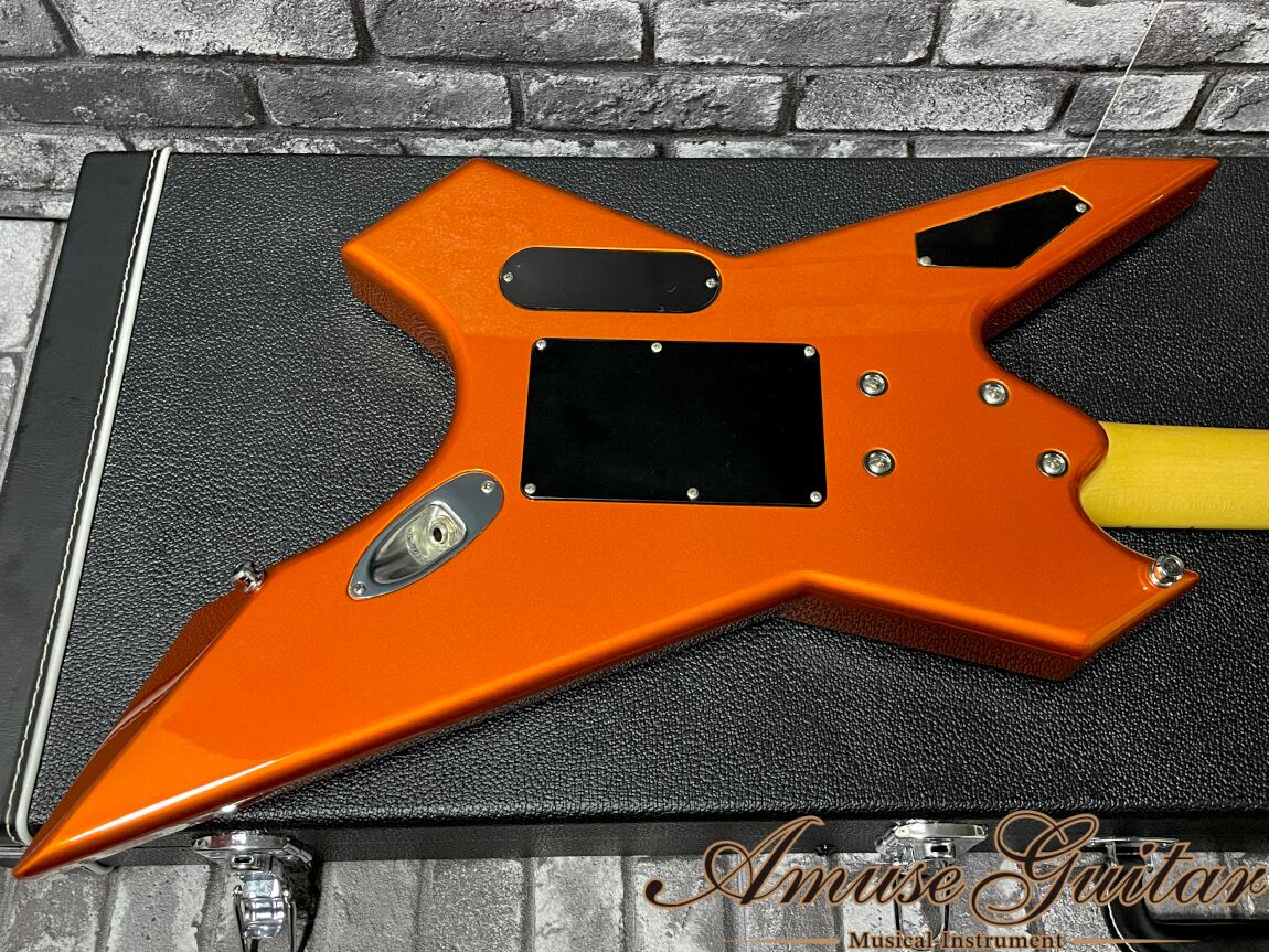 今回ご紹介させて頂きますのは、そのキラー発足のきっかけにもなった高崎晃氏のメインギターシリーズの”プライム”です。1988年頃より生産/開発が始まり、その先進的スペックはその時代に応じて更新/進化されていきました。高崎氏の要望を基に定番スペックを更に発展/応用し、進化したスペックとなっており、現在の高崎氏ステージ/レコーディングでも活躍する究極のモデルです。そしてその中でもレアカラー個体となるメタリックオレンジとなり中々お目にかかれない逸品です。