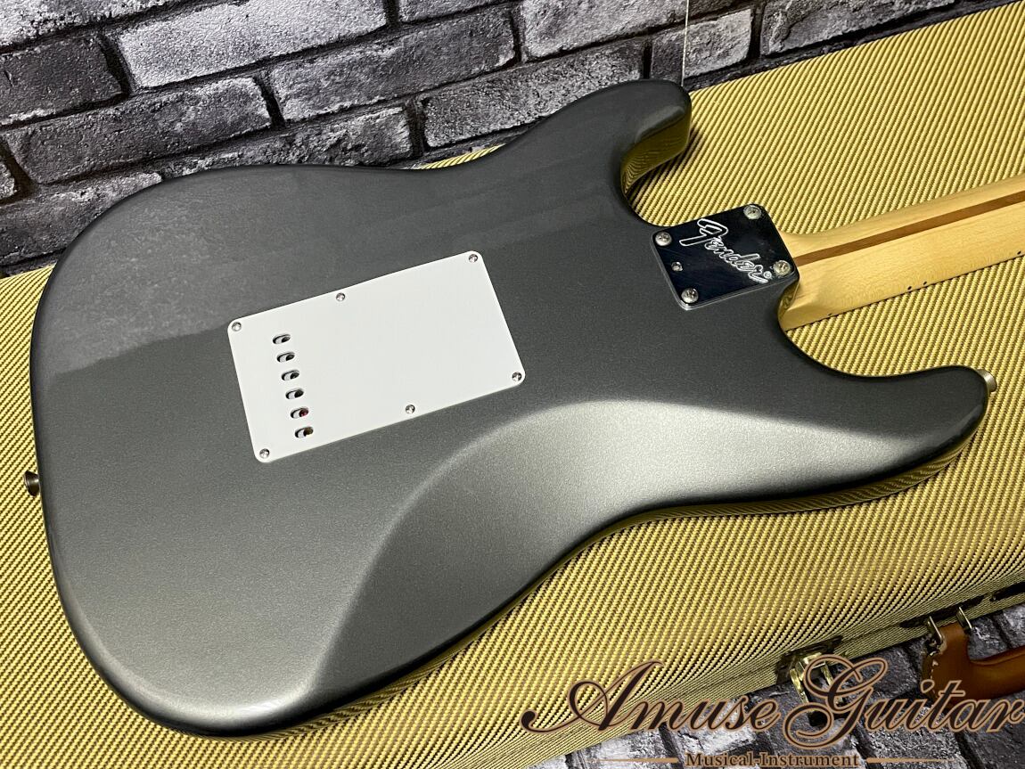 こちらのスペックは、ボディにアルダー材。ネックはメイプル1Pを使用した木材マテリアル。ボディフィニッシュには1990~1991年にかけての”24ナイツ”のライブにてクラプトンが多く使用していた事で一躍有名となり、市場でも常に高い人気を誇るピューターカラーをグロス仕上げにて採用。後述のピックアップ&コントロール類以外につきましてはストラト然としたスペックを踏襲しており、5wayピックアップセレクター、クルーソン片側6連ペグチューナー、ストリングガイド×1、8点止め1Pホワイトガード、6点支持シンクロナイズドトレモロ、舟形ジャック等が挙げられます。