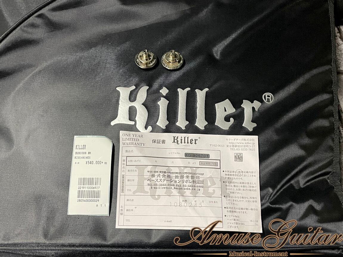 現在の新品定価は¥737,000-(税込)、そして注文後の納期は約2年待ちの受注商品となっており、そもそも新品でも簡単には手に入らない激レアアイテムとなるKB-DUBIOUS。その美品コンディションの中古品となれば今後も滅多にお目にかかれない機会となるばかりか、今回入荷品はご本人のサインも入った超プレミアムアイテムとなります。Ni~ya氏のファンの方には勿論、ラウドな音楽性にぴったりなベースをお探しの方にも心からお勧めできるKiller社の拘りが詰まった最高峰の一本。お探しだった方はもちろん、お気になりました方は絶対にこのチャンスをお見逃しなく。下取りをご検討の方もお気軽にご相談ください。