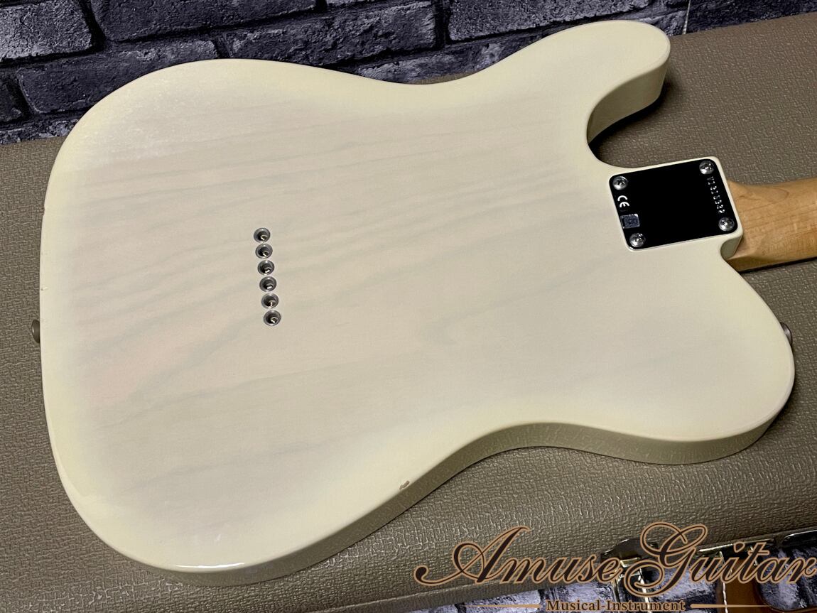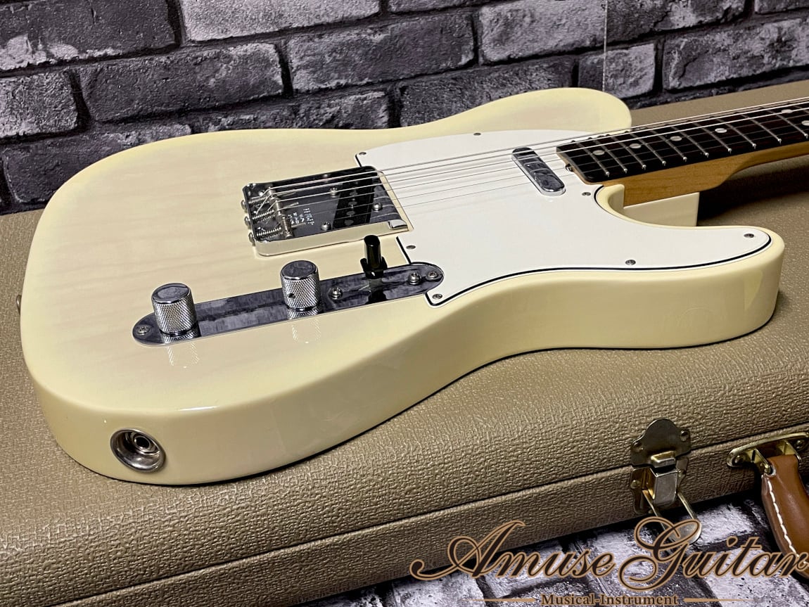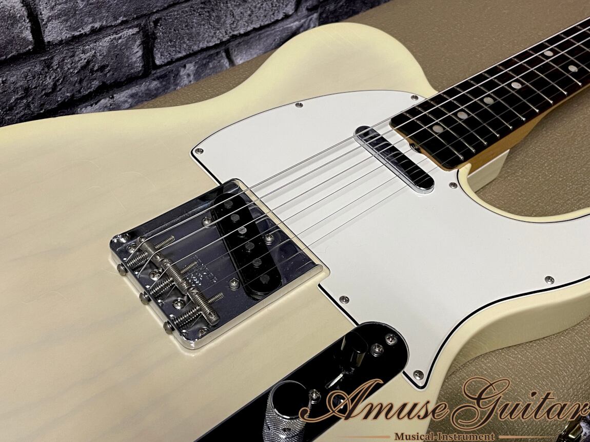 今回ご紹介させていただきますのは、そのフェンダーテレキャスターの中でも人気の高いブロンドカラー+ローズ指板の64仕様に製作されたUSA製の一本。塗装には、史上最薄と称されている【New Fender Flash Coat Lacquer】極薄のラッカーフィニッシュで仕上げらており鳴りもカスタムショップ製に負けず劣らずの素晴らしい仕上がりかつ、軽量でバランスも良い取り回しの逸品となります。