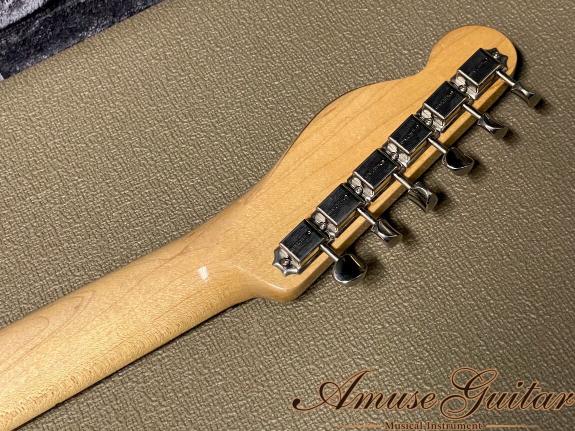 サウンドにつきまして、テレキャスターの良さである立ち上がりの良いスピード感と、深い鳴り、低音のコシ、サウンドニュアンスの敏感さが抜群に発揮されております。ローズ指板特有のローミッドの甘さ/太さと、切れ味鋭い音ヌケが素晴らしく、カッティングはもちろん、クリーンサウンドでのメロウな余韻は生唾もののクオリティ。軽量のアッシュから繰り出されるトゥワンギーなサウンドから感じる厳選された木材と、極薄塗装、そして組み込みのレベルの高さもビリビリと伝わってきます。