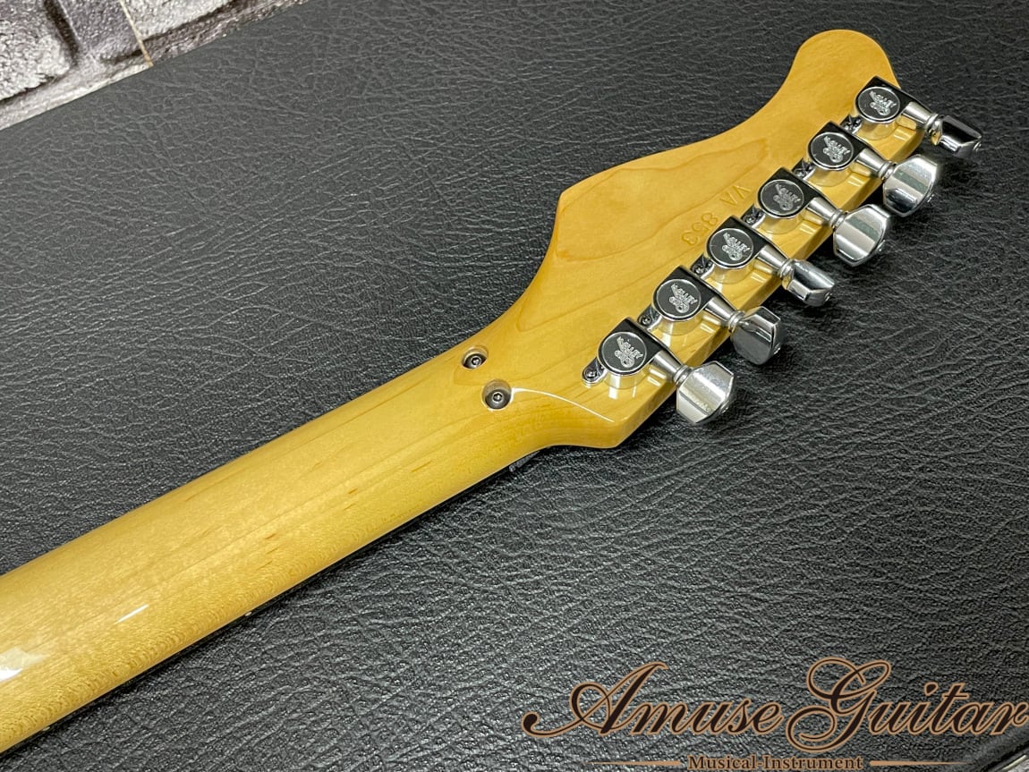 サウンドの要となりますピックアップには、全てEMG製にてフロントからノンコネクタータイプのSE/SE/85のコンビネーションをマウント。サウンドの太さ、和音での各弦の発音の良さ、解像度の高さ、反応の早さ、どれをとっても素晴らしいハイエンド然としたサウンドが繰り出されます。ハードなドライブ時もしっかりとまとまり、クリーン時には骨太かつ煌びやかなキャラクターを操れます。フロイドローズの自由度の高いアーミングも相まって、“ヴァレーアーツのプレイと言えば”と言わんばかりの縦横無尽な演奏が可能で、ずっと弾いていたくなる様なサウンド&プレイアビリティです。
