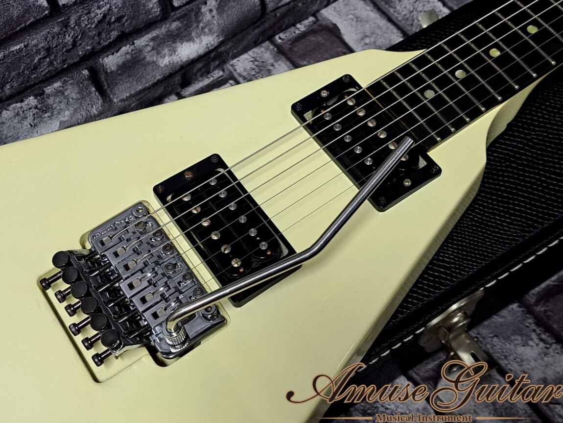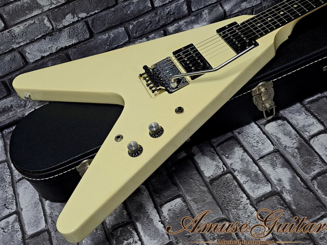 今回ご紹介させて頂きますのは、そのギブソン社フライングVにフロイドローズトレモロをマウントしたHR/HM、その他ハードなジャンルにルックスと共にサウンドも最適合した一本。2011年頃に限定生産にて極々少数生産されたレアアイテムで、Zakk Wylde、Jeff Loomis、Rudolf Schenker、Kirk Hammett、そして”JIMMY”こと広瀬さとし氏に代表される【クラシックV+フロイドローズ】な憧れのルックスを本家GIBSON製にてゲットできるチャンスは中々ございませんので、気になる方はマストバイな逸品です。