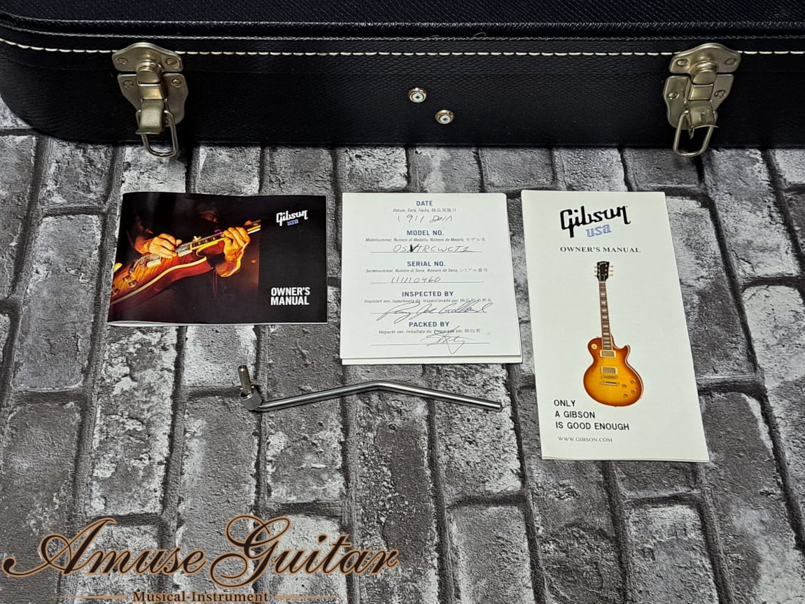 コチラのスペックは、マホガニーボディ、マホガニーネックに、今や希少材となるエボニーの中でも真っ黒で木目の詰まった指板を採用した木材マテリアル。ミディアムスケール、22フレット、セットネック構造。スペック自体は非常にシンプルですが、やはり最大の特徴はそのブリッジで、通常フライングVには限られたアーティストモデルでない限り搭載されていないフロイドローズトレモロをマウント。リセス加工も施されており、激しいアーミングはもちろん、アームアップ、スクウィールも可能です。その他スペックとしましては、1960年代スタイルの象徴ともなるヘッド形状はシャープな仕様、Gibsonロゴはトラスロッドカバーにプリント、クルーソンタイプペグ、ドットインレイ、エスカッションマウントのピックアップ、トップジャック等が挙げられます。コントロールは3wayピックアップセレクター/マスターヴォリューム/マスタートーンとなります。