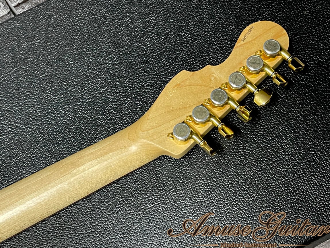 最後に状態としては、ボディバックに大き目のスレ、若干の打痕や、細かなパーツ使用感はございますが、塗装の艶もしっかりと残った綺麗な印象を持つコンディション。プレイやビリティは全く問題なく、ネックトラスロッドの余裕も確認済み、フレットはほぼ10割残り。付属品はアーム、ソフトケースです。※画像のケースは撮影用の物となります。