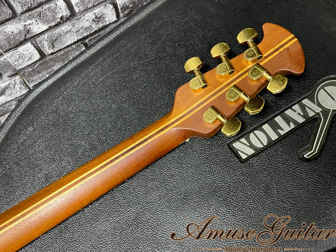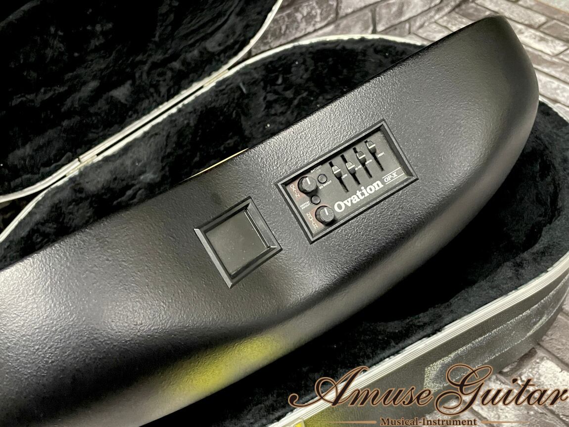 状態につきましては、金属パーツ若干のくすみ、軽微なスレは確認できますが、その他目立つダメージは無く、製造から27年経過していることを考えると驚きの美品コンディションとなります。プリアンプ等の挙動も確認しております。ネックコンディションも良好で、ハイ起きや、波打ち等も無く、トラスロッドの余裕もしっかりと確認済みです。フレット残りも9割以上残りと、まだまだ使えます。付属品につきましては、オーナーズマニュアル(モデル名、シリアル入り)、オベーションロゴ入りストラップ、オリジナルオベーションハードケースとなります。