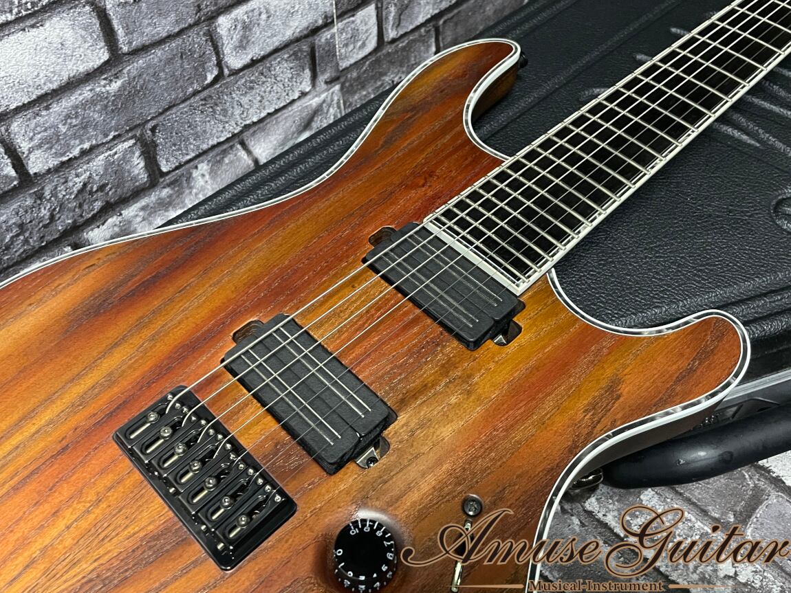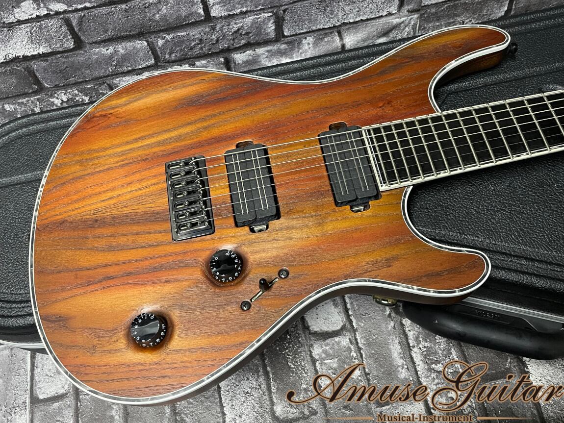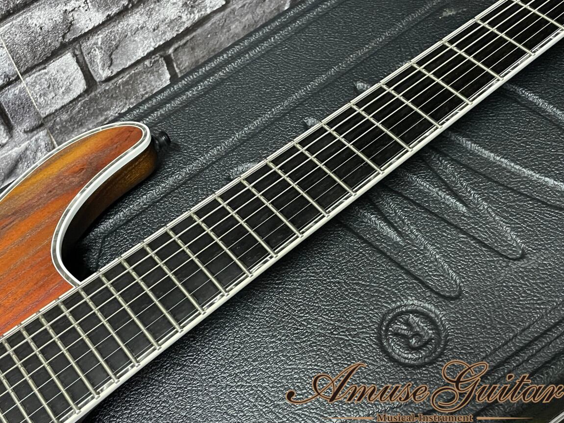 メイワンズ人気のレジウス7弦。レアカラーの木目+ブラウンに加え、” Djenty”でエッジの効いたサウンドが素晴らしい逸品。超美品コンディションにて入荷しました。