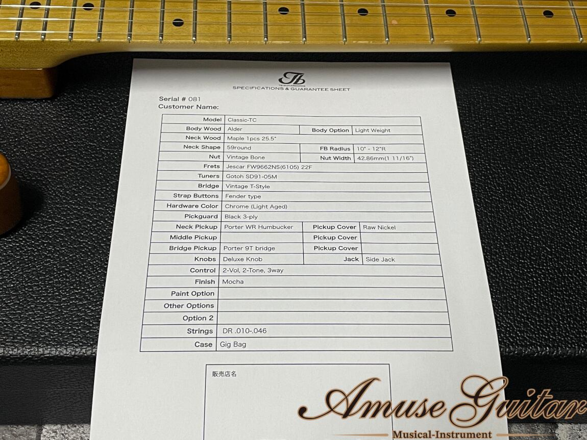TB Guitarworks Classic TC # Mocha Light Aged 2019年製【Light Weight Alder】w/GIG Case 3.30kg