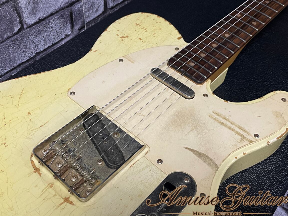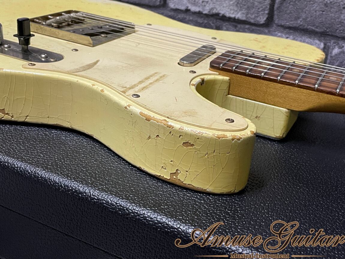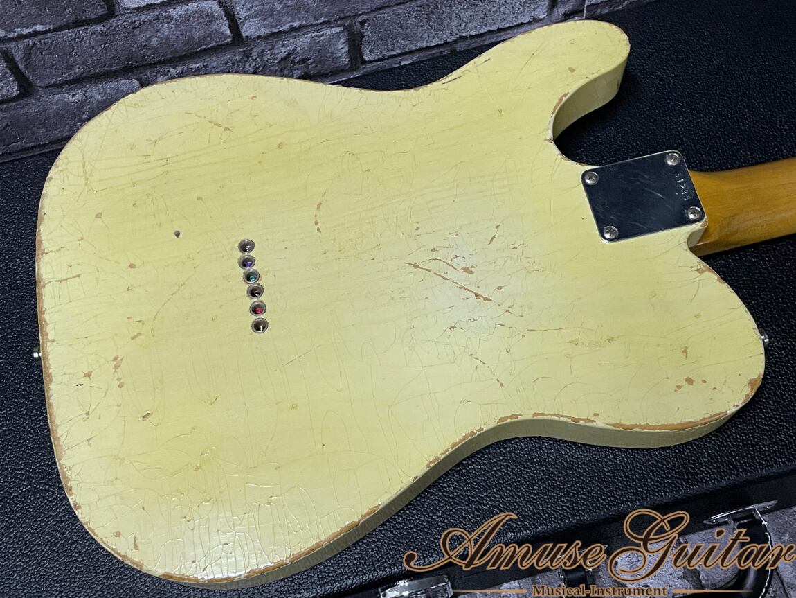 サウンドの要となるピックアップには、Lollar社製のアルニコ3マグネットがフロント/リア共にマウント。リアはスタッガードポールピース仕様。51~55年の様なニュアンスのヴィンテージライクなサウンドで、フィンガーピッキングにて軽いタッチでの演奏はポリッとしたハイミッド~トレブルの中にも枯れ感とJBサウンドを彷彿とさせる様なまとまり。ドライブ時の気持ちの良い歯切れと音ヌケは、まるでリアルな年代物のテレキャスターを弾いているかの如く、気持ちの良い木材鳴りがアンプから放たれます。そのサウンドデザインの緻密さはFender社カスタムショップ製にも負けず劣らずの驚きのクオリティです。